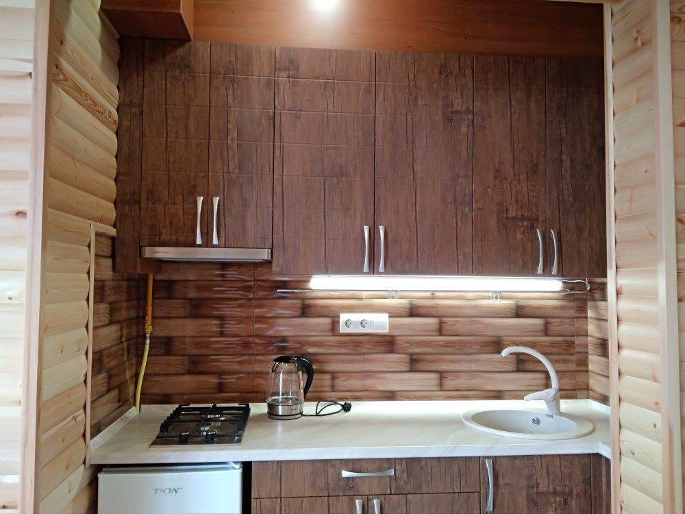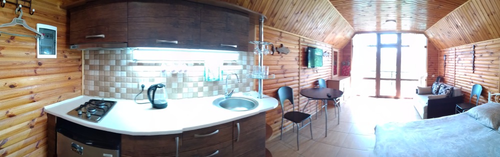 • кухня в каждом номере; в 100м есть столовая (домашняя кухня)