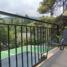 Три номера (№2,3,4) с балконами и большими панорамными окнами - вид на море и горы, балконы 4*1,8 м, площадь номера 30 кв м, максимальное количество человек - 4, для сна двуспальная кровать + раскладной двухместный диван.