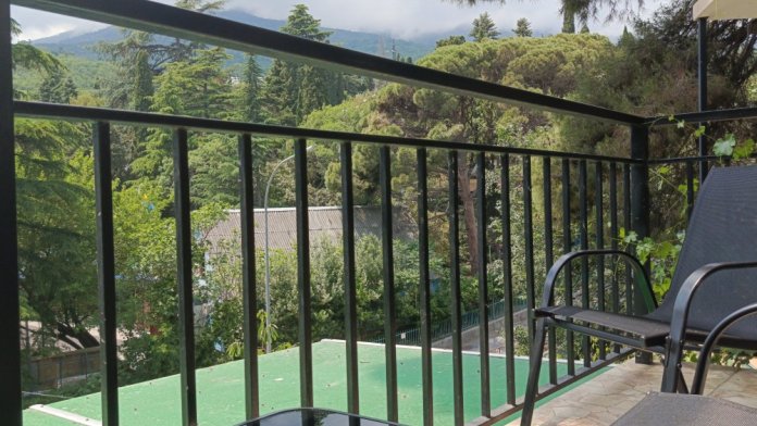 Номер для тех, кто любит провести вечер на балконе, любоваться красотой крымских гор, вдыхать свежий воздух и при этом не подниматься по лестнице в номер. Вход на уровне первого этажа, балкон на уровне третьего этажа.