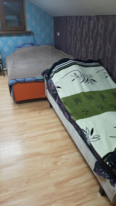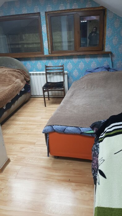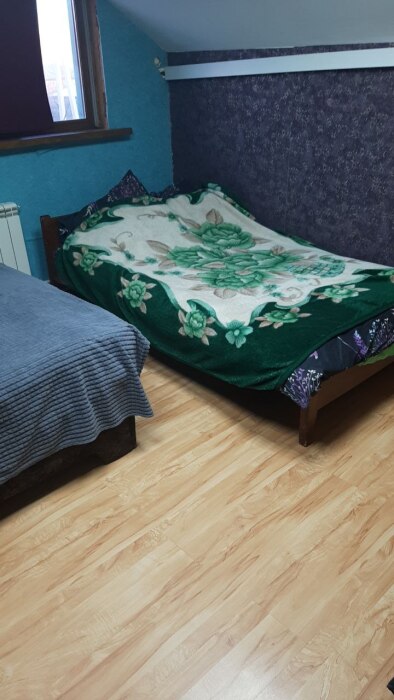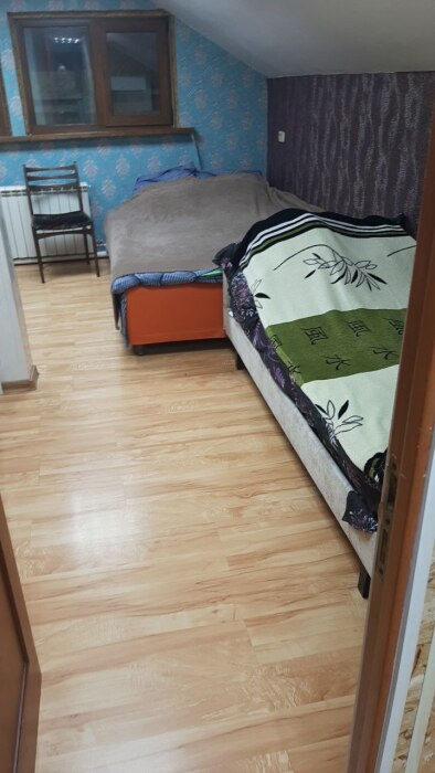 На втором этаже спальные места. Три раздельные комнаты. В одной комнате 3 двухспальные кровати, во второй 1 двухспальная и 3 полуторки, в третьей одна двухспалка.