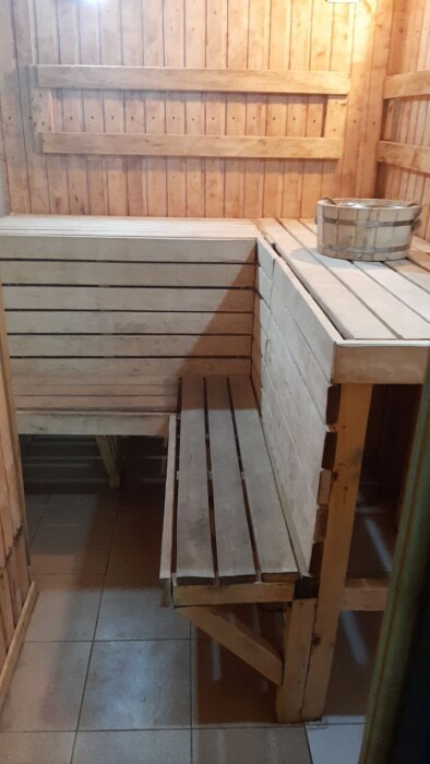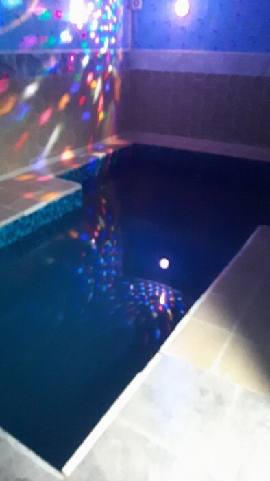 Рядом с комнатой отдыха финская сауна, душевая с шампунь и гелем для душа, бассейн и санузел. Вода в бассейне 28 градусов. Размеры бассейна 5 на 3 метра.