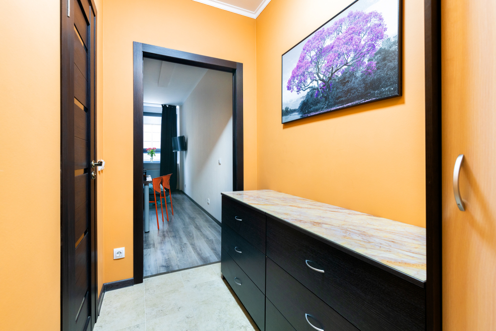 Уютная студия вмещает до 4-ти гостей и находится на 7 этаже дома бизнес-класса в ЖК «Граф Орлов».