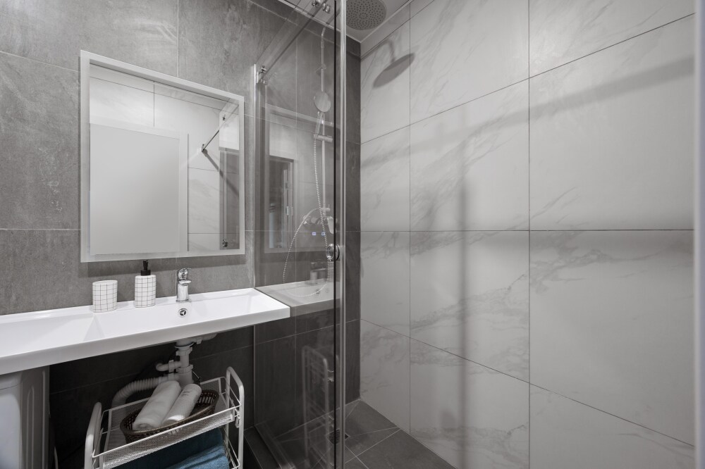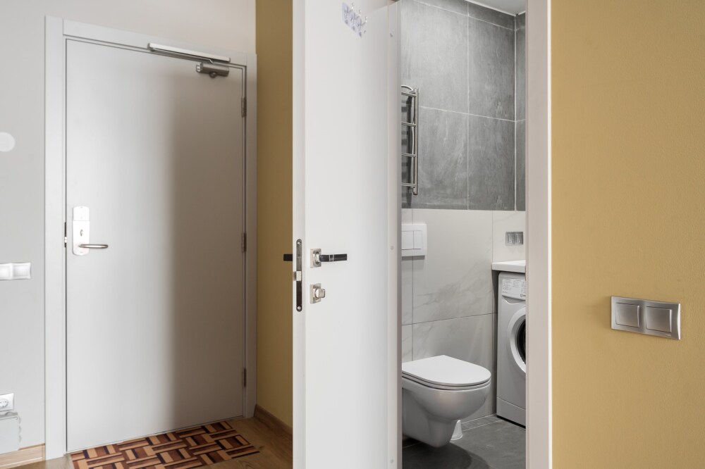 Собственный санузел, где есть душ и туалет. Утюг и фен для вашего удобства, а также стиральная машинка, чтобы всегда иметь свежую одежду под рукой.