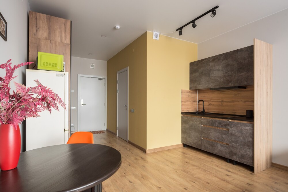 В лобби на 1 этаже стильная зона коворкинга, круглосуточный пункт охраны, бесплатная парковка на территории отеля.