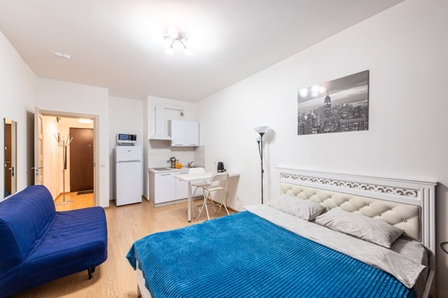 Уютная студия вмещает до 4-х гостей и находится на 3 этаже дома бизнес-класса в ЖК “Москва”. Новый комплекс бизнес-класса располагается в одном из красивейших мест Московского района, рядом с площадью Победы.