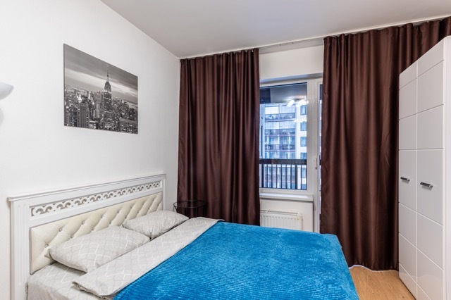 В квартире есть балкон и все необходимое для комфортного проживания: двуспальная кровать, раскладной диван, телевизор, кухонная зона со всем необходимым, совмещенный санузел.