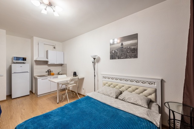 Уютная студия вмещает до 4-х гостей и находится на 8 этаже дома бизнес-класса в ЖК “Москва”. Новый комплекс бизнес-класса располагается в одном из красивейших мест Московского района, рядом с площадью Победы.