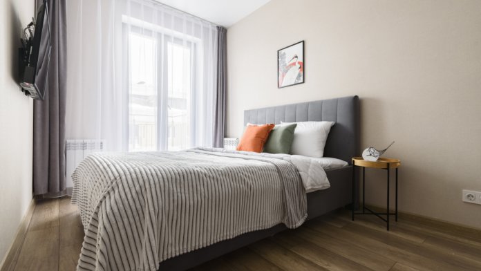 Удобную двуспальную кровать с ортопедическим матрасом и раскладной диван для двух дополнительных мест.
