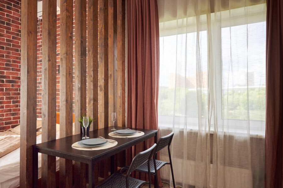 Студия находится в 20 минутах езды от аэропорта Внуково, в пешей доступности от метро Говорово.