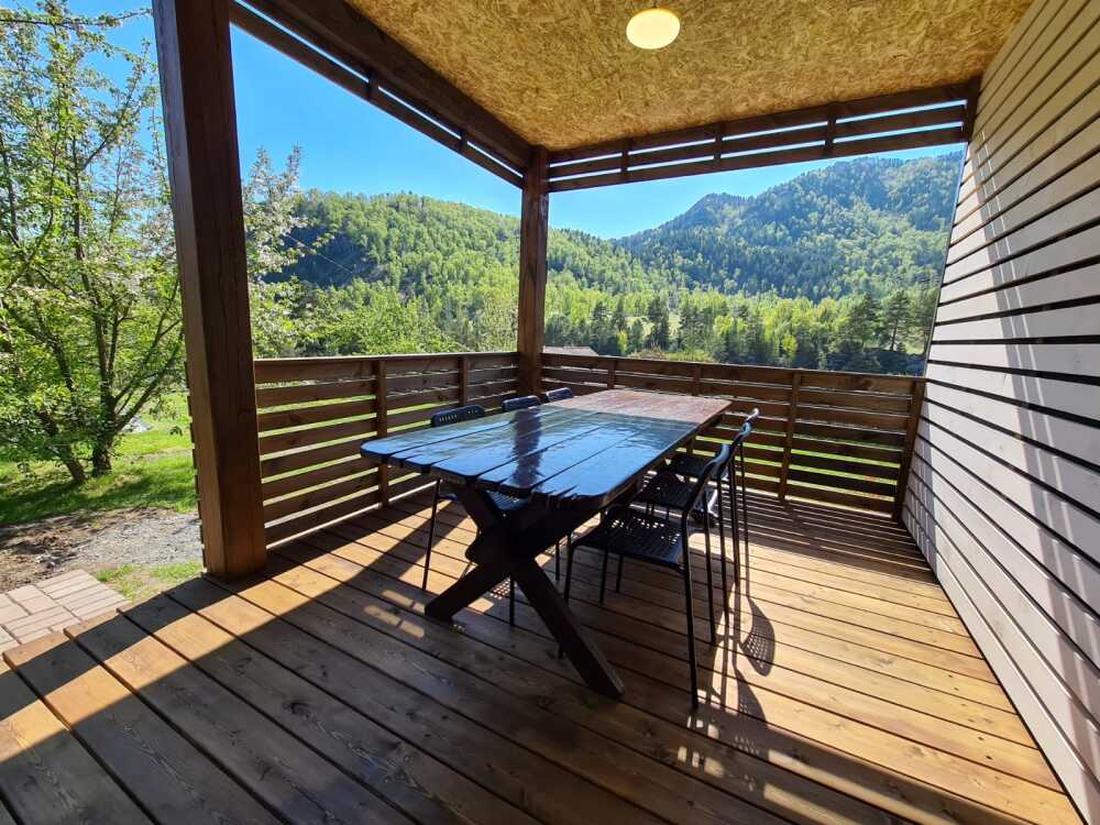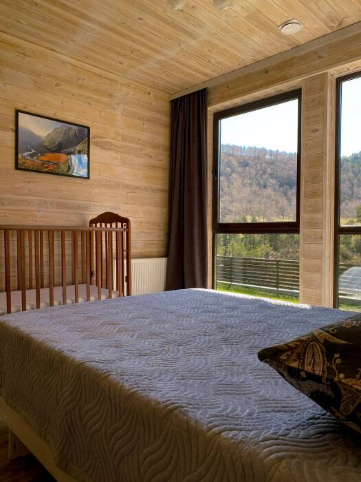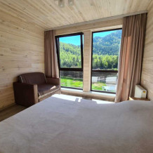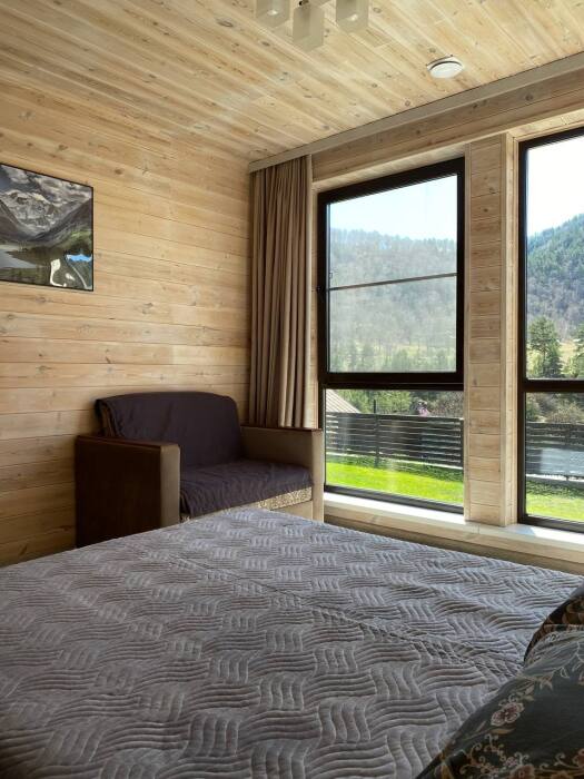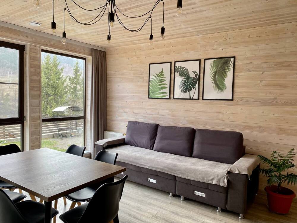В шале: две 2-спальные кровати (1,4*2м), софа, диван, стол, стулья, телевизор, wi-fi,