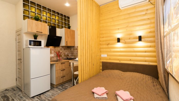 Студия находится в 20 минутах езды от аэропорта Внуково, в пешей доступности от метро Говорово.