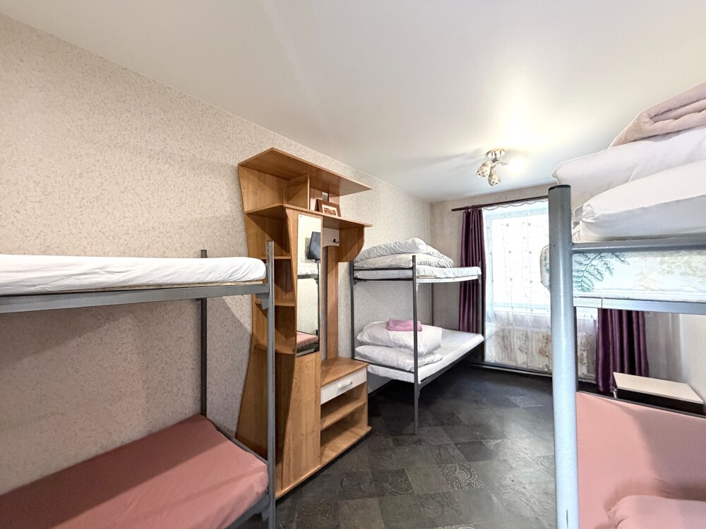 Койко- место в общем восьмиместном номере с общим санузлом, кухня общего пользования, вай-фай, бесплатная парковка, мангальная зона на территории