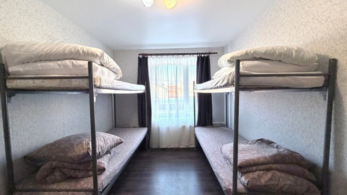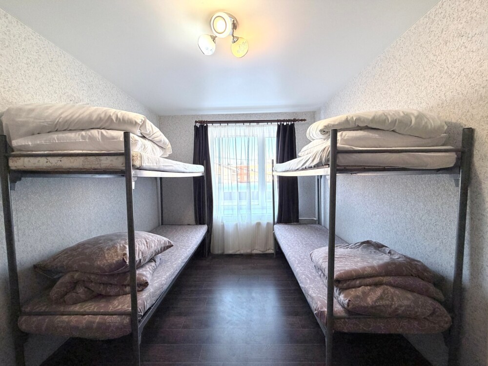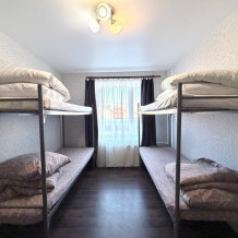 Место в общем четырехместном номере, в номере две двухярусные кровати, мебель, вай -фай, общие два санузла в доме, общая кухня, парковка своя, мангальная зона, беседка.