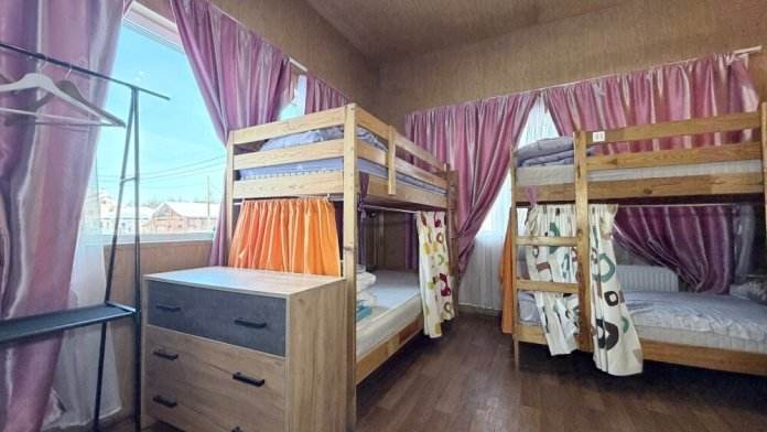 Койко-место в общем 6-ти местном номере. Три двухярусные кровати, мебель, вай -фай, общая кухня в доме, общие два санузла. Парковка своя, мангальная зона, беседка. Вид из окна во двор.