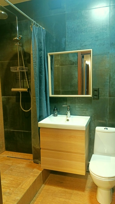 - Кухня со всем необходимым (холодильник, варочная панель, микроволновая печь, чайник, а так же посуда, для приема и приготовления пищи).