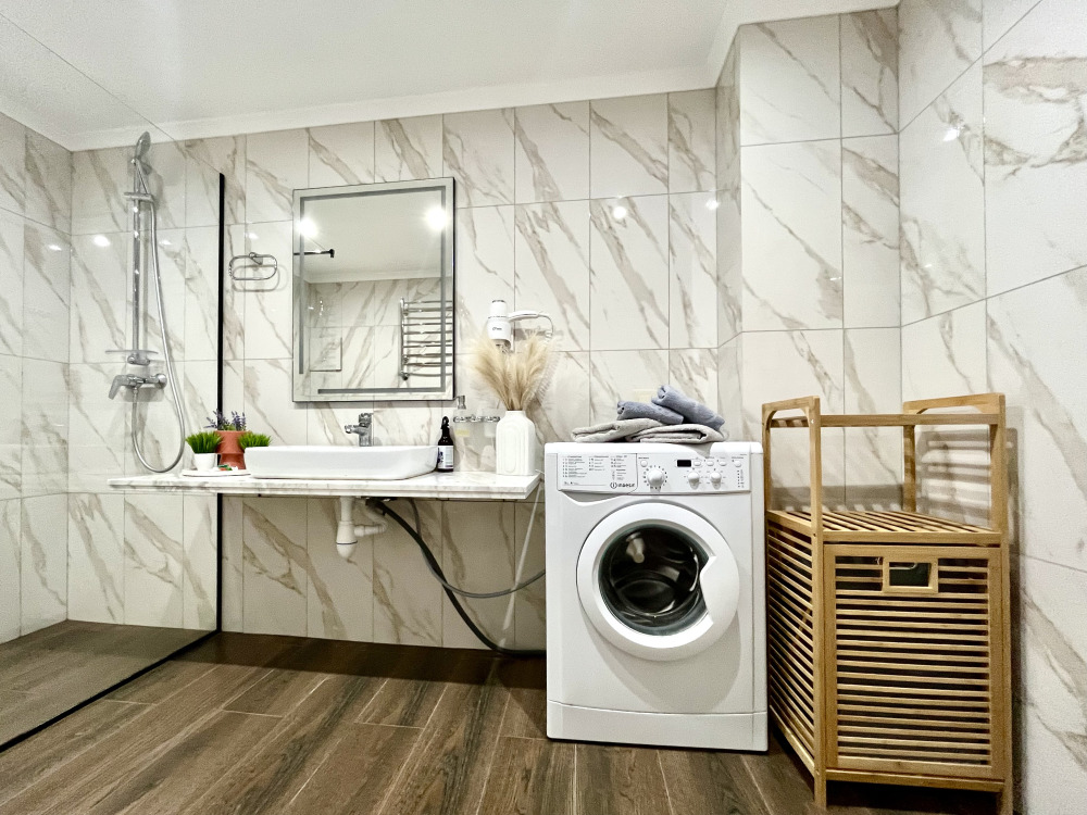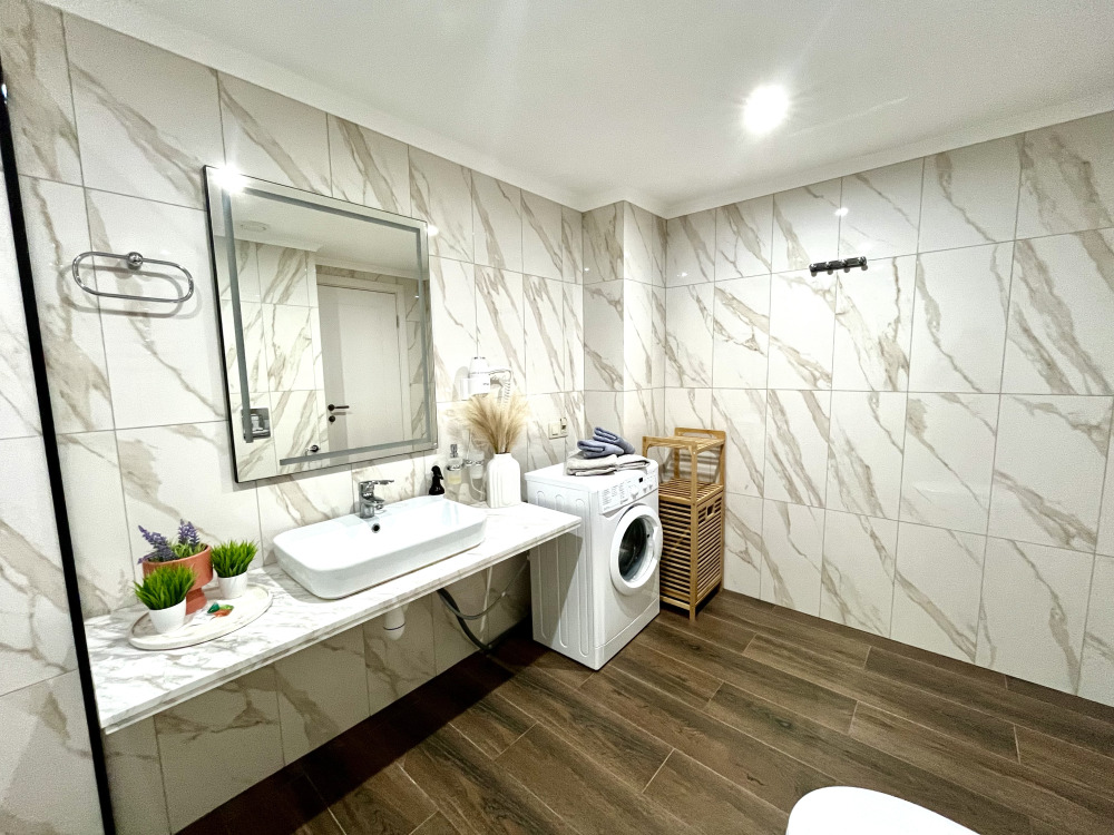Комплектация: туалетные принадлежности (гель для тела, шампунь, тапочки, зубные щетки и пасты, туалетная бумага, капсулы для стирки, халаты), чай, конфеты, посудомоечная машина, двуспальная кровать, комфортное кресло кровать, постельное белье, полотенца, телевизор, духовой шкаф, варочная поверхность, микроволновая печь, холодильник, стиральная машина, кондиционер, набор посуды и столовых приборов, чайник, фен, утюг, глад. доска, сушилка, интернет.