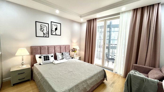 Квартира-студия располагается в апартаментном комплексе ПРЕМИУМ-класса на самой новой набережной Анапы в 30 метрах от моря. Чтобы искупаться - есть специальный, удобный спуск с набережной (10 минут пешком). Рядом 1-3 мин. расположены все необходимые для жизни и отдыха заведения.