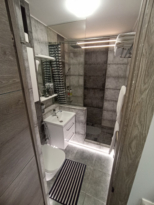 В квартире установлены кондиционеры, что позволит в жаркие дни чувствовать себя комфортно. Так же имеются 3 тв, wifi, большой шкаф, ванная комната, утюг, фен, прекрасный чистый зелёный двор.