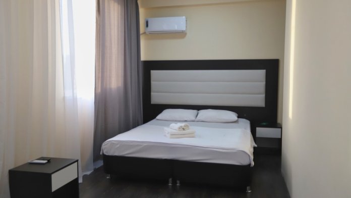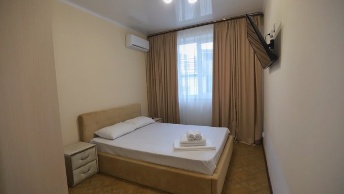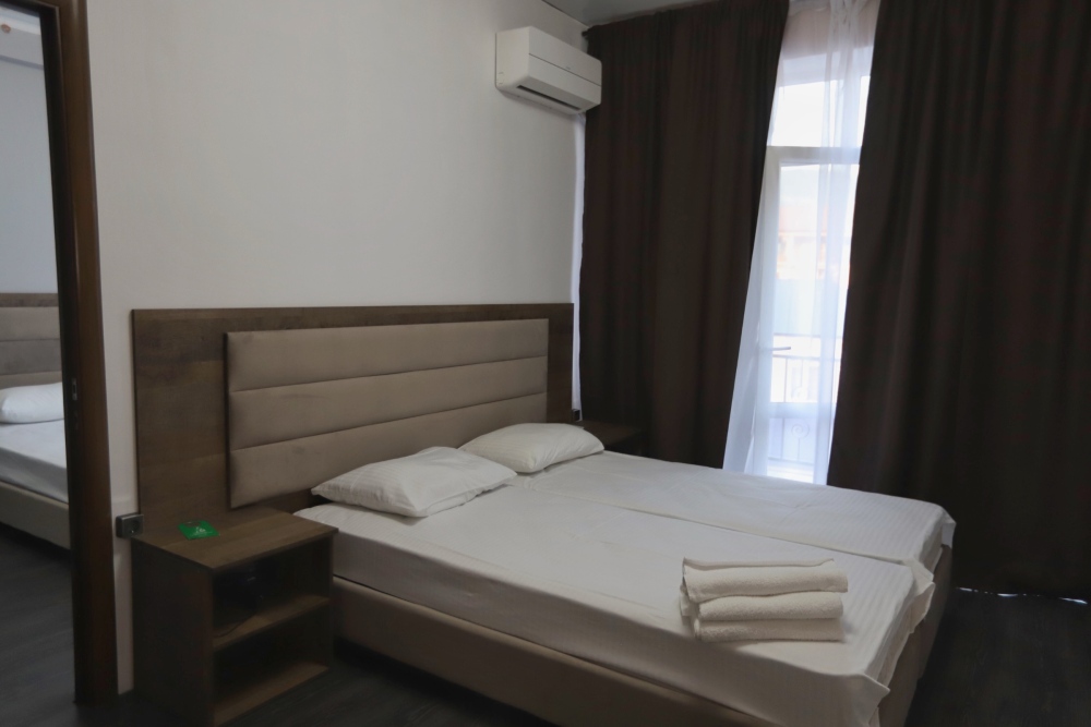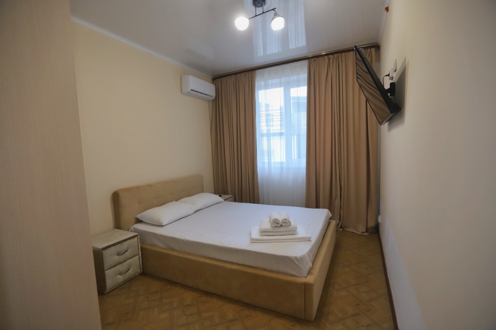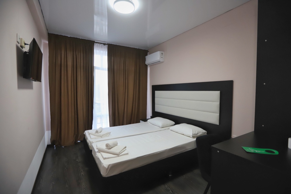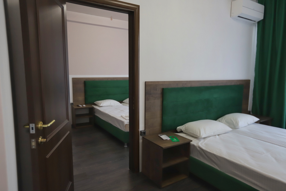 Большой однокомнатный номер рассчитан на размещение четырёх человек на двух основных и одном дополнительном месте (диван-кровать). Номер отвечает всем современным требованиям комфорта и отдыха, оборудован индивидуальной системой климат контроля, кроватью с ортопедическим матрасом и мягким изголовьем с возможностью разделения на две кровати, выходом в интернет, телевизором с плоским экраном и спутниковым TV, звуконепроницаемыми окнами.