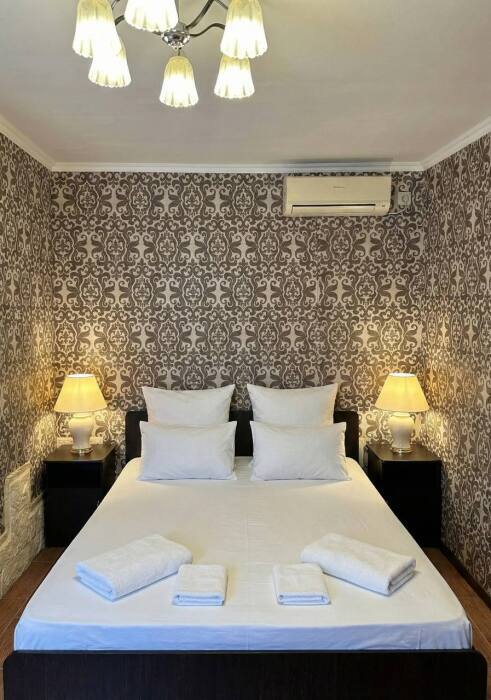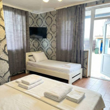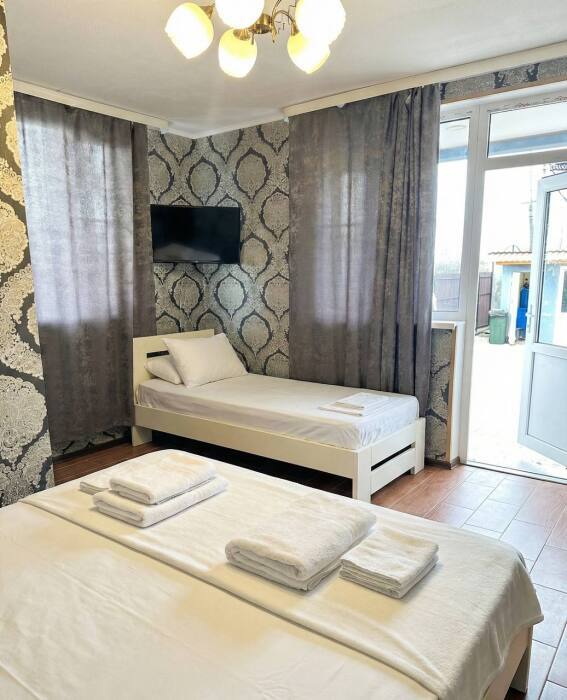 Мы предлагаем гостям комфортные однокомнатные и двухкомнатные номера, двухместного, трехместного и четырехместного размещения. Каждый номер спроектирован с любовью и заботой о Вашем комфорте, обеспечивая уютную атмосферу для семейного отдыха. Просторные комнаты, современные удобства и милые детали (тапочки и халаты) создадут ощущение домашнего уюта и тепла. Уборка производится на 5-е сутки Вашего пребывания.
