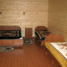 Отличительной особенностью пансионата является уникальная, экологически чистая отделка здания и номеров. Она выполнена из дерева смерека, которое произрастает в Карпатах. Территория малого отеля небольшая, полностью озелененная. На ней оборудован уютный уголок для отдыха гостей, зеленая зона. В номерах есть выход на общую галерею или балкон. Поклонники уютного домашнего и недорогого отдыха будут полностью удовлетворены. К Вашим услугам 7 номеров с шикарным видом на море и 5 номеров с видом на горы. В каждом номере есть абсолютно все необходимое для комфортного проживания, включая гостиничную парфюмерию. Замена полотенец производится через день, замена постельного белья раз в 4-5 дней. На территории отеля всегда есть холодная и горячая вода.