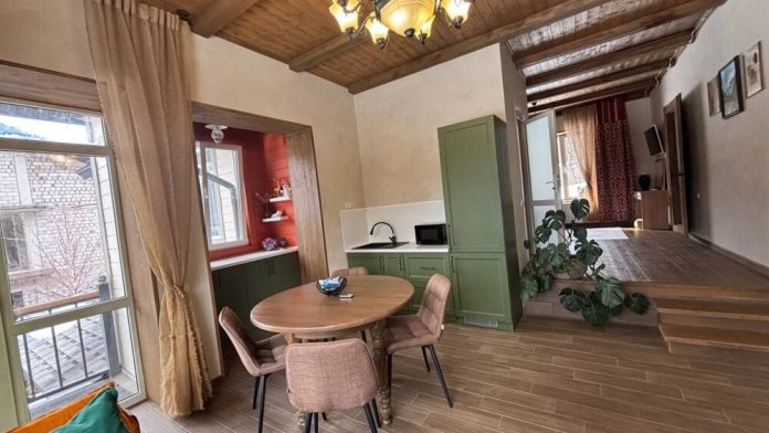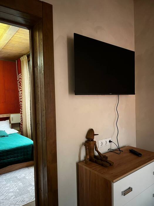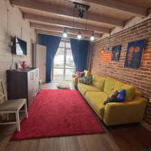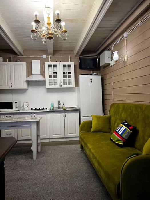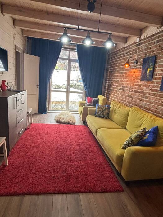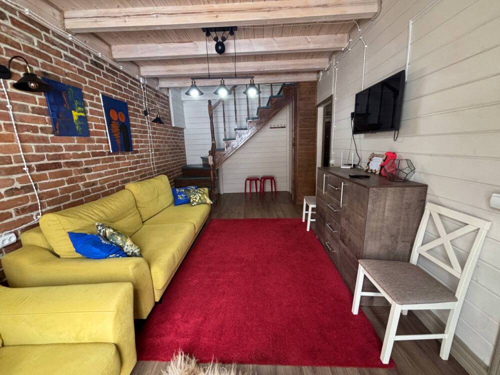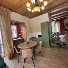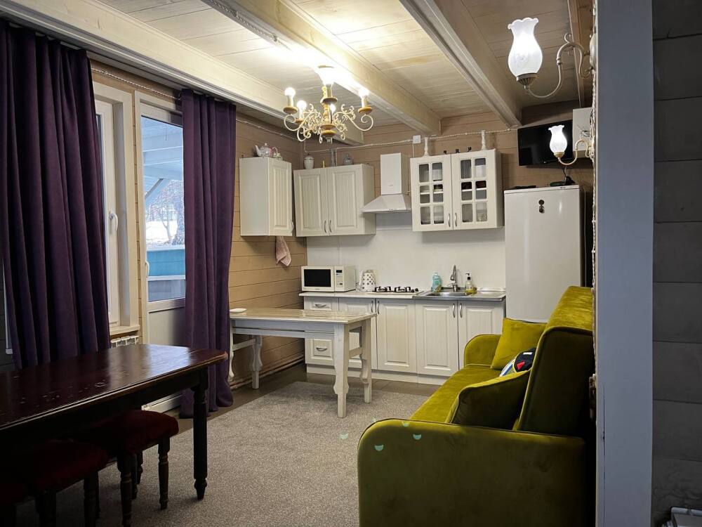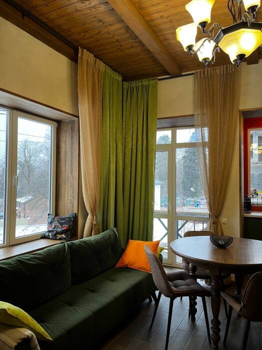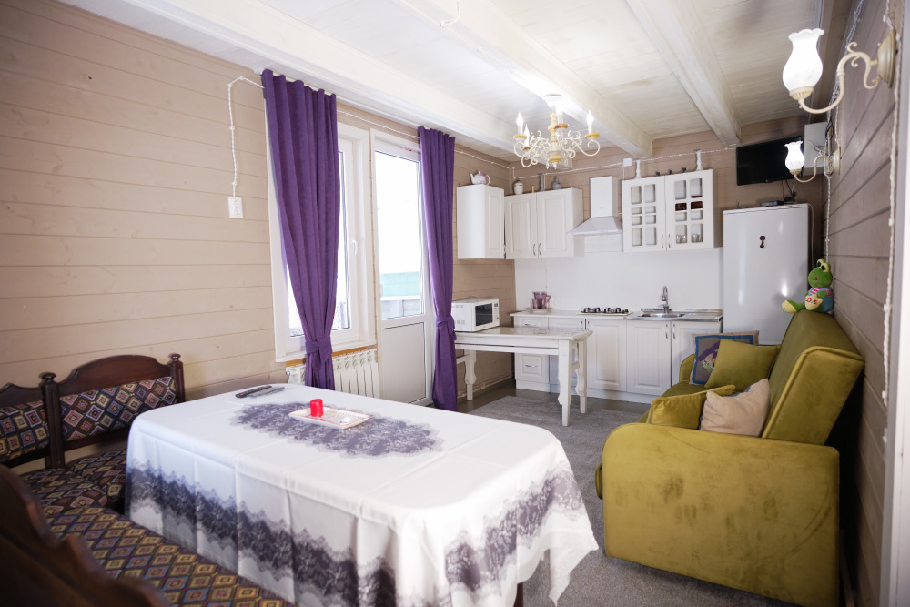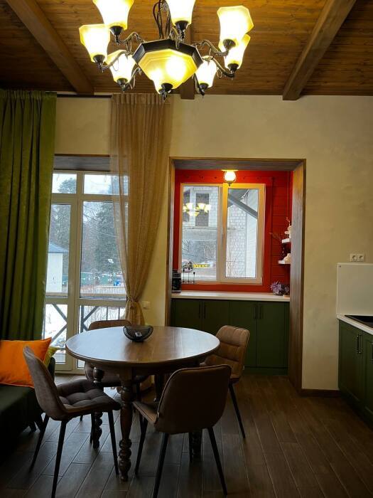 Апартаменты на 6 человек, дизайн, качественная мебель и свежий ремонт. В доме есть кухонный уголок, посуда, обеденная зона, теплый пол.