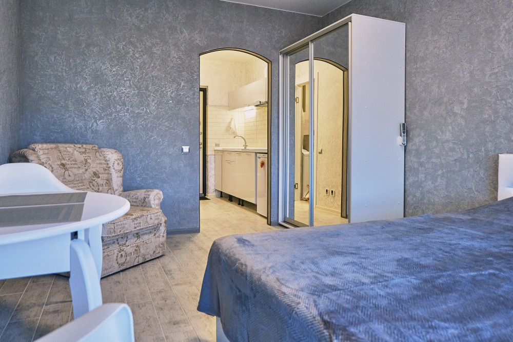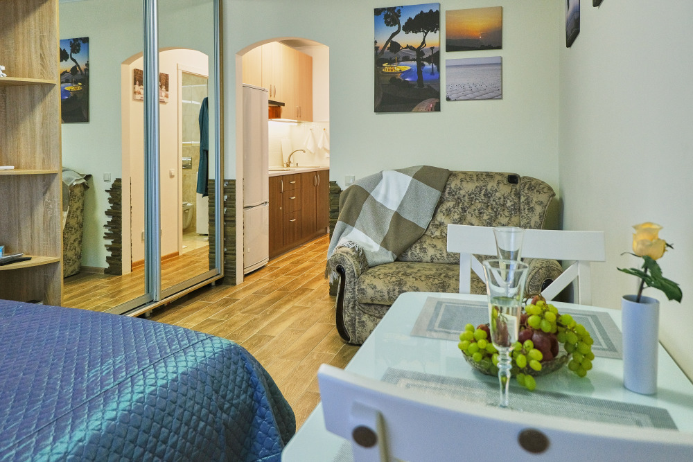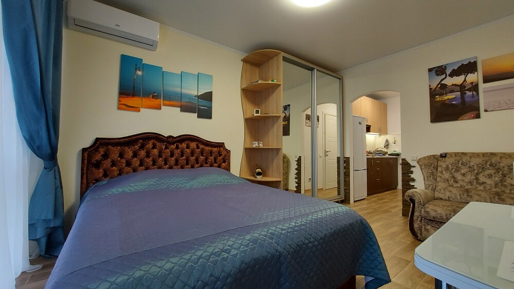 Сдаются уютные апартаменты на четвертом этаже с балконом. Первая береговая линия. Работает лифт. В апартаментах есть все необходимое для комфортного проживания: Wi-Fi, кондиционер, холодильник, телевизор с кабельным/цифровым ТВ, гардероб, стиральная машина, утюг, гладильная доска, сушилка для белья, фен, постельные принадлежности, полотенца, пляжные принадлежности (полотенца, сумка-подстилка). Спальня оборудована удобной двухспальной кроватью 200х160 и креслом-кроватью 180х95. Квартира имеет выход на балкон с видом на горы и море. На балконе расположена садовая мебель (стол и кресла). Кухня оснащена современной техникой (холодильник, микроволновка, индукционная печь, эл.чайник), кухонными принадлежностями, посудой и столовыми приборами. Ванная комната оборудована душевой кабиной, бойлер обеспечивает круглосуточную подачу горячей воды. В квартире предоставлены средства гигиены. На территории комплекса расположены ресторан «Фиолент», продуктовый магазин, небольшое кафе. Парковка бесплатная на территории комплекса. Курение и размещение с животными не допускаются.