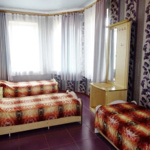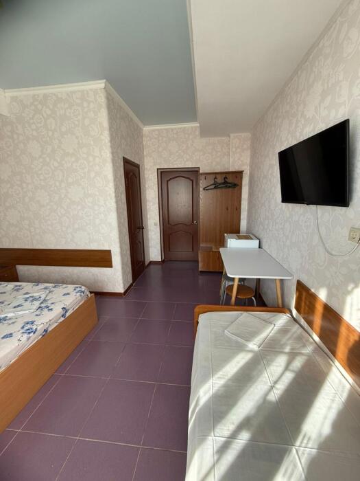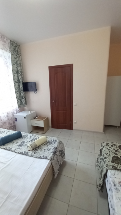 В комнатах есть все необходимое для комфортного проживания: спальные места, телевизор, холодильник, кондиционер. В ванной оборудован стандартный набор сантехники.