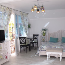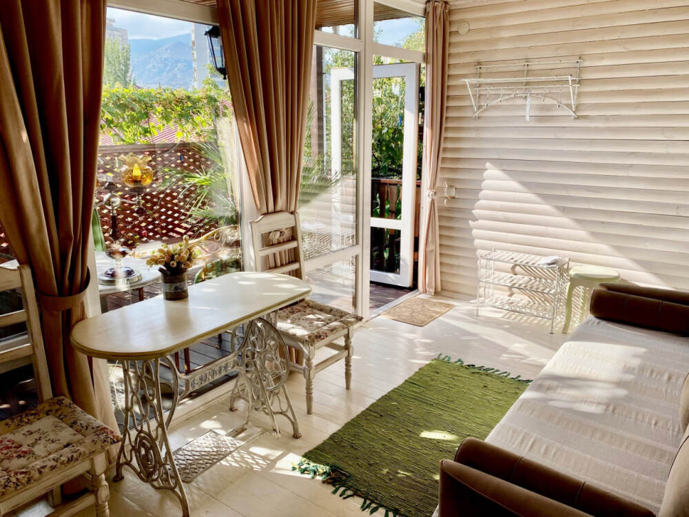 Номер в стиле «шебби», мини-кухня, отдельный вход, «французский балкончик» и большая терраса.