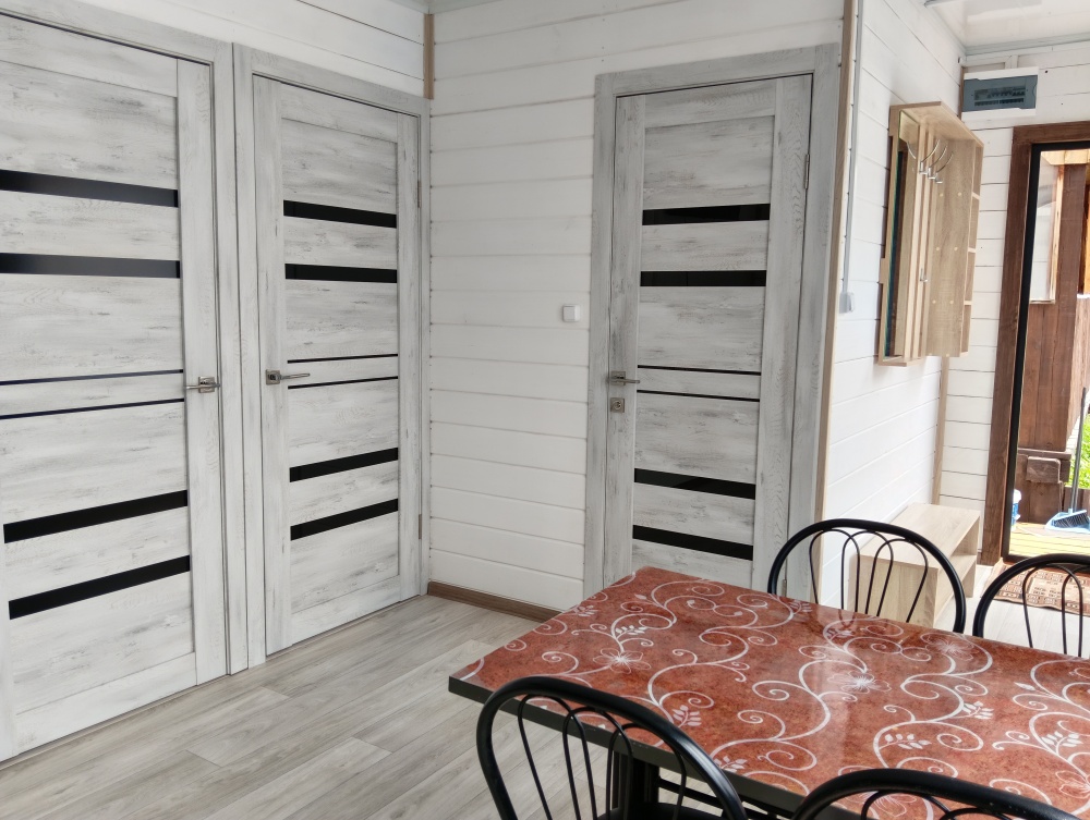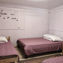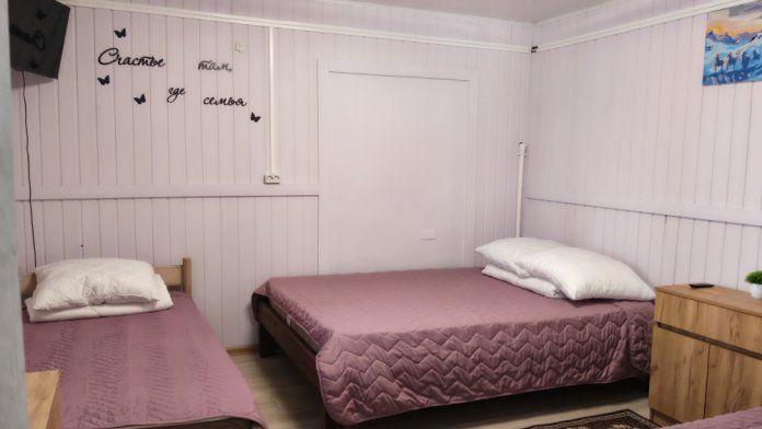 К услугам гостей семейные номера, разной вместимости. В номере расположена просторная комната, кровати, шкаф для хранения белья, прикроватные тумбы, постельное бельё, полотенца, телевизор, wi-fi. На кухне имеется вся необходимая посуда для комфортного проживания, электрическая плита, чайник, холодильник, микроволновая печь, в с/у есть душевая кабина, раковина для умывания, унитаз, туалетные принадлежности (зубные щетки, шампунь, мыло, тапочки).