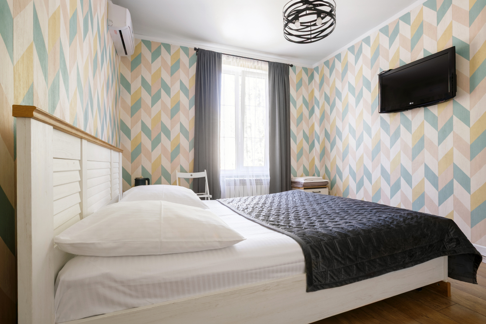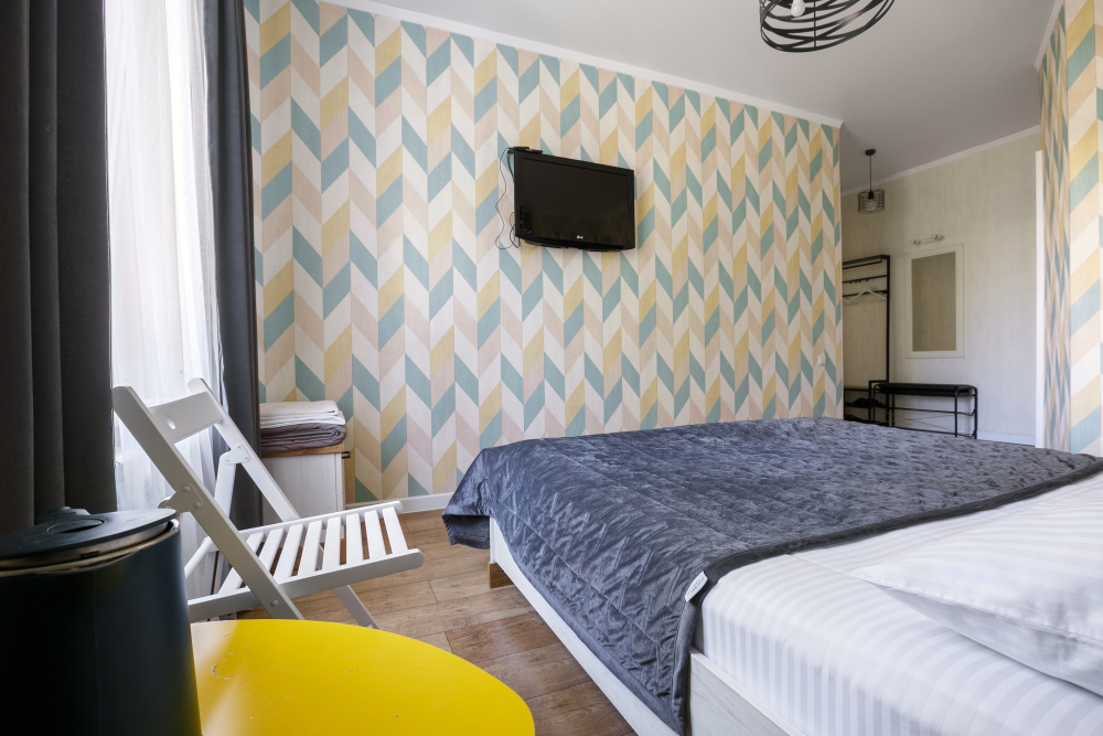Компактный, но продуманный номер, где есть всё для комфортного проживания. Уютная двуспальная кровать с качественным матрасом обеспечит крепкий сон после дня прогулок или деловых встреч. Это экономное и стильное решение для тех, кто ищет чистую, удобную и полностью оборудованную комнату в сердце города.
