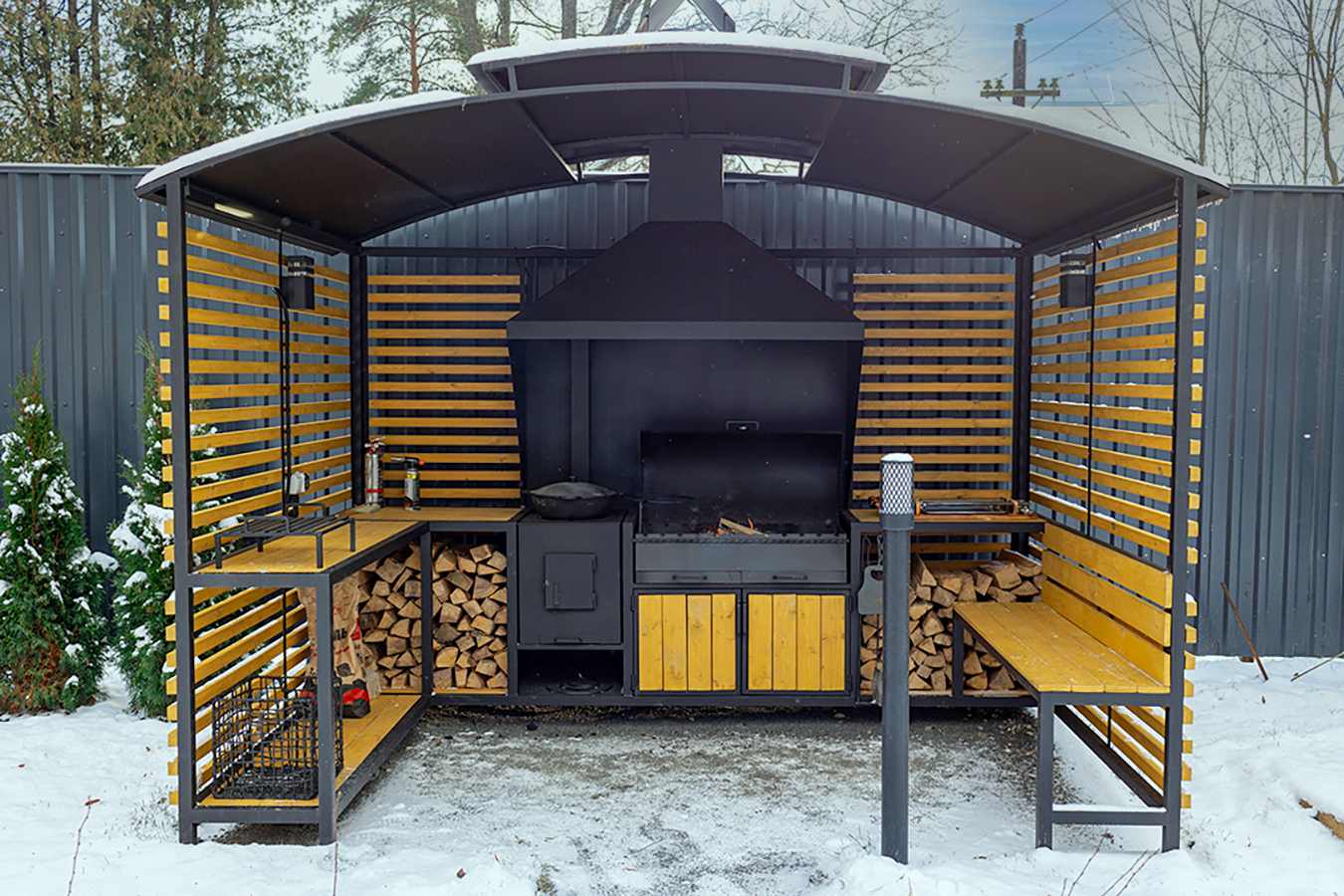 - Большая мангальная зона под крышей;
