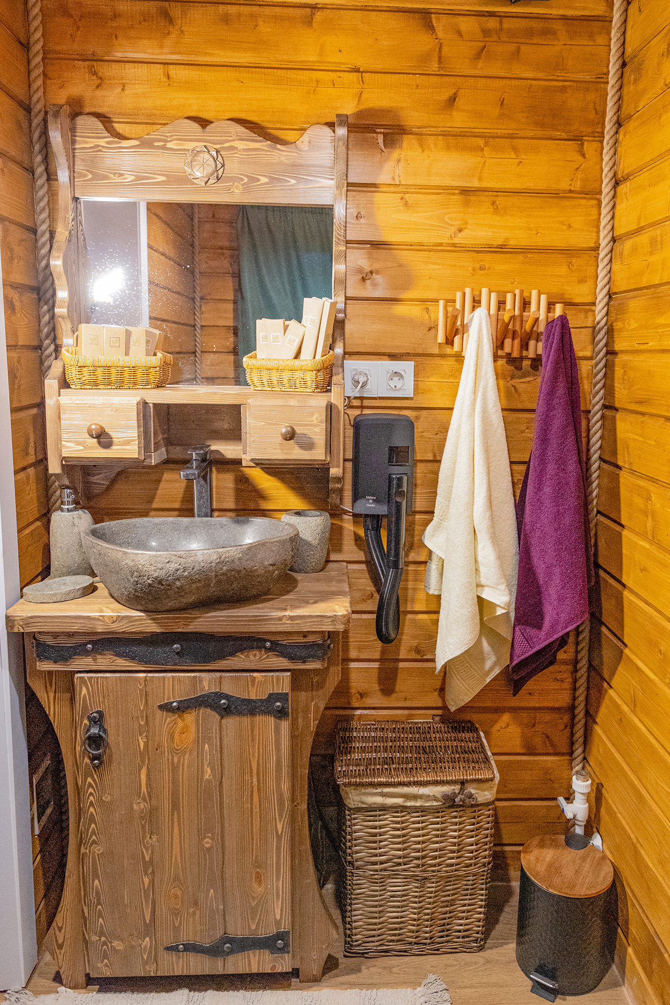 - Всё необходимое для гостей: тапочки, халаты, полотенца, гигиенические принадлежности, веники, травы, ароматические масла, шампуры, уголь, дрова, розжиг, специи, чай и кофе, лёд.