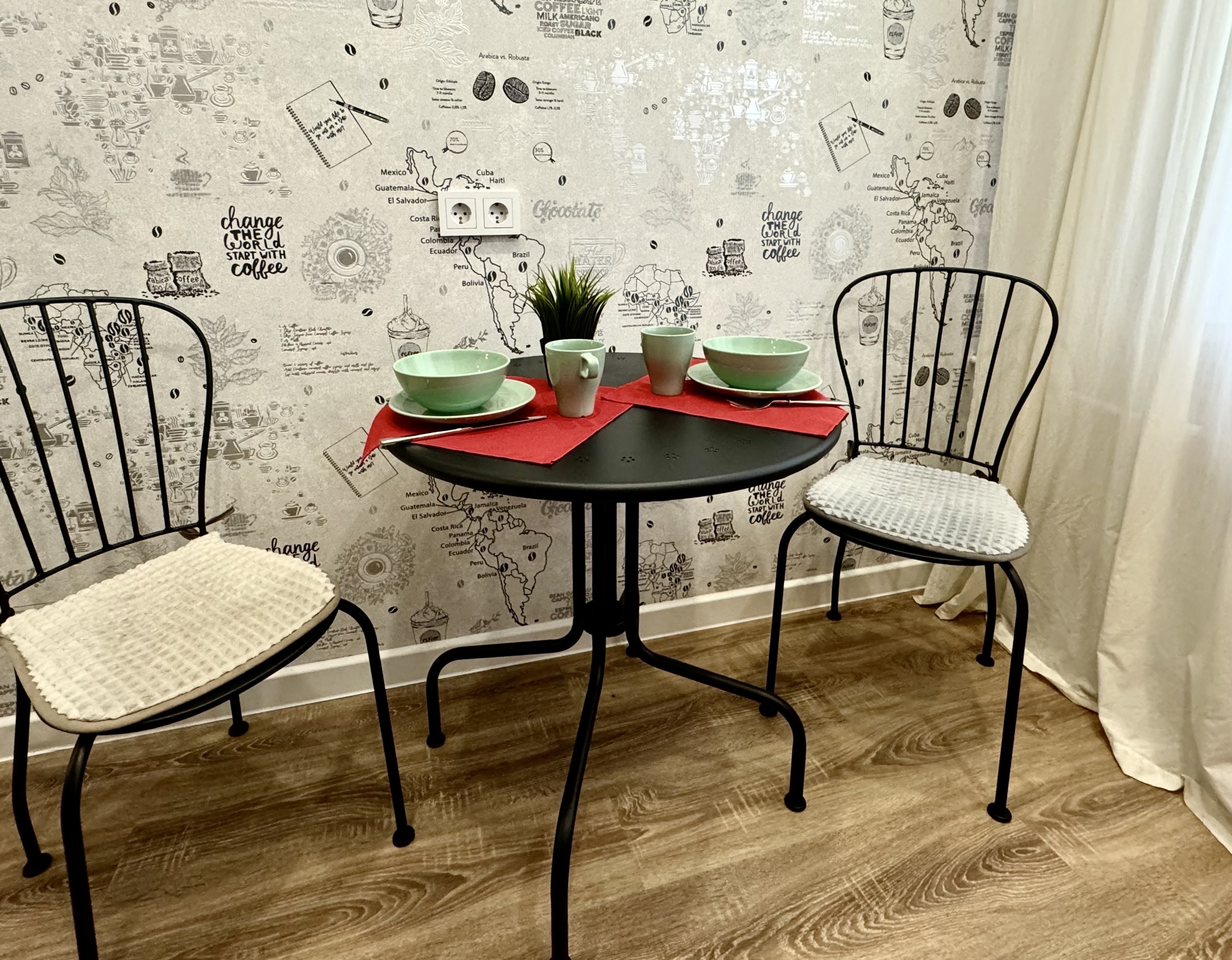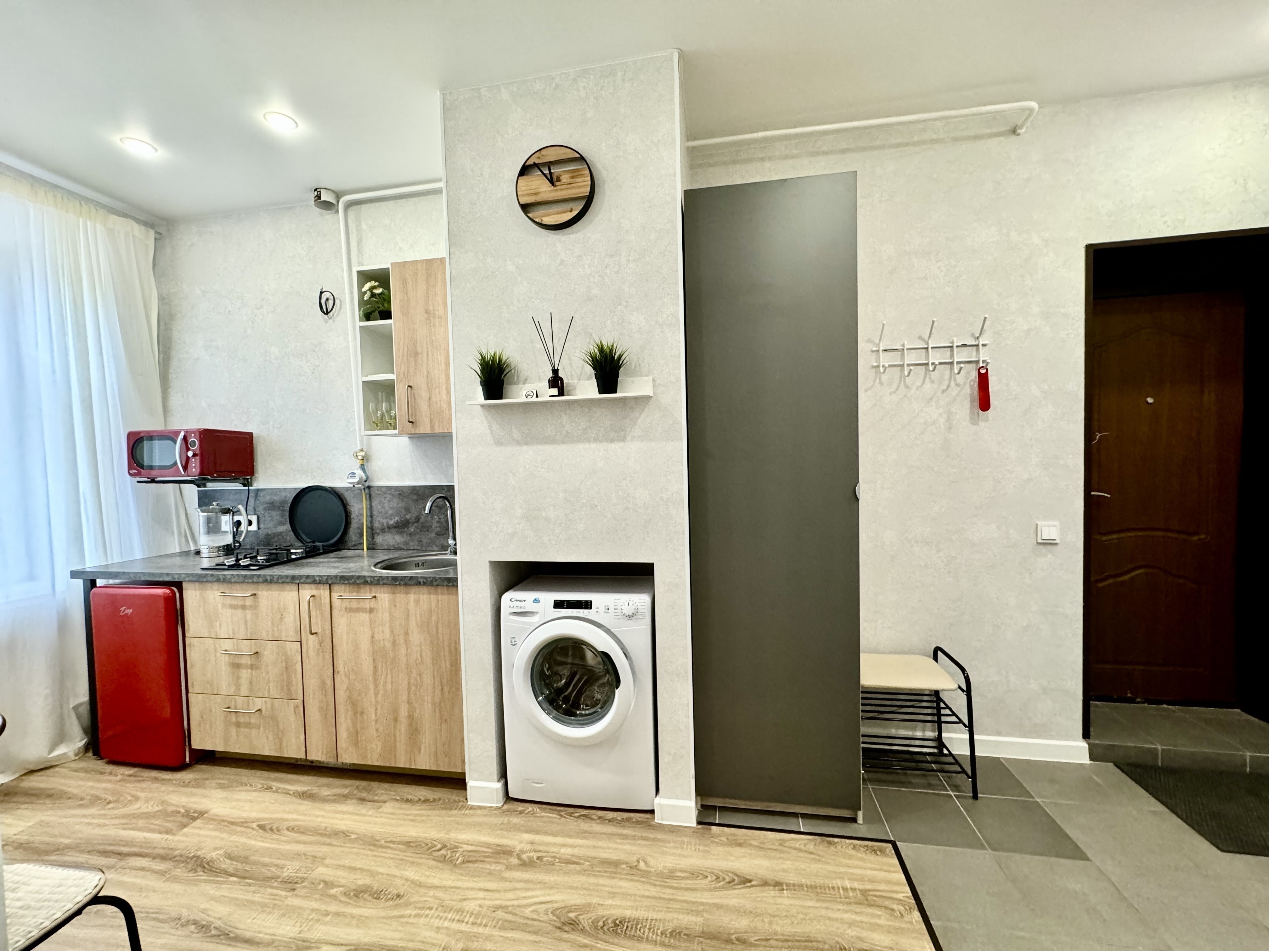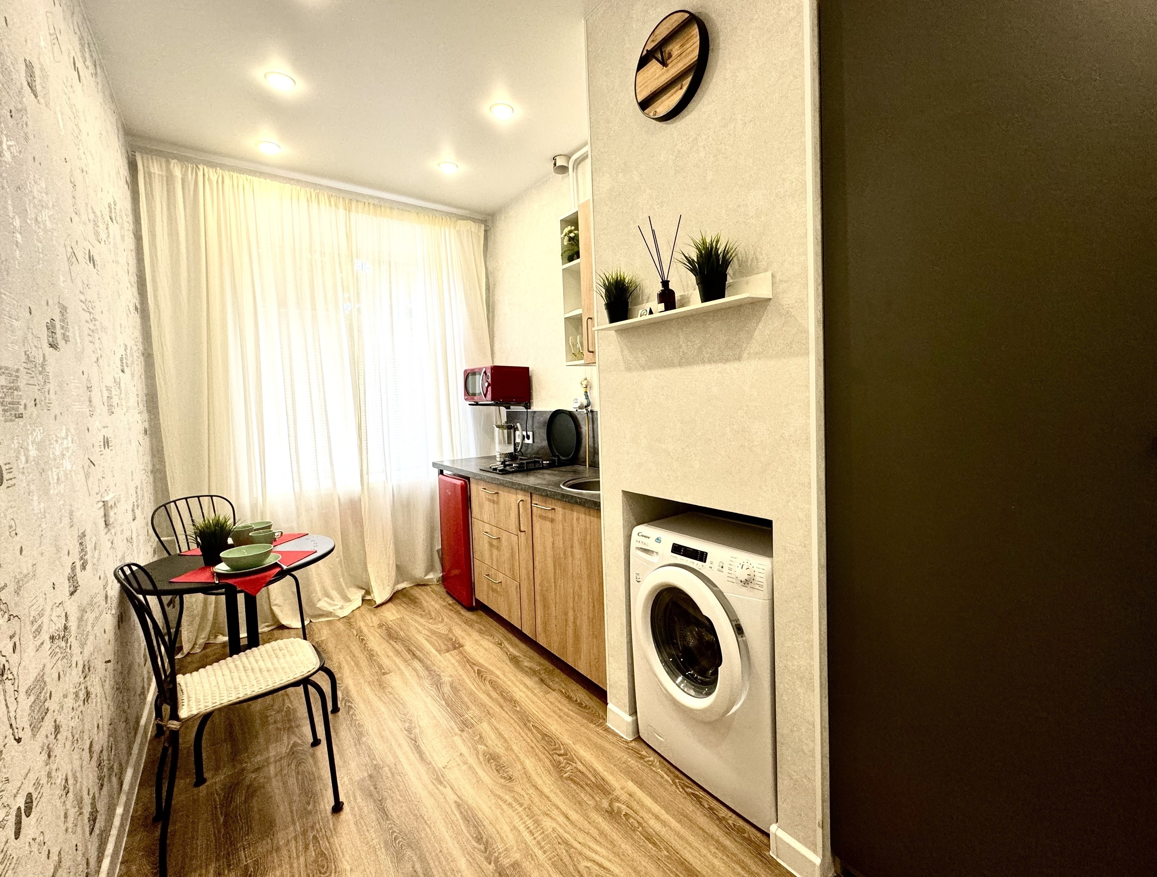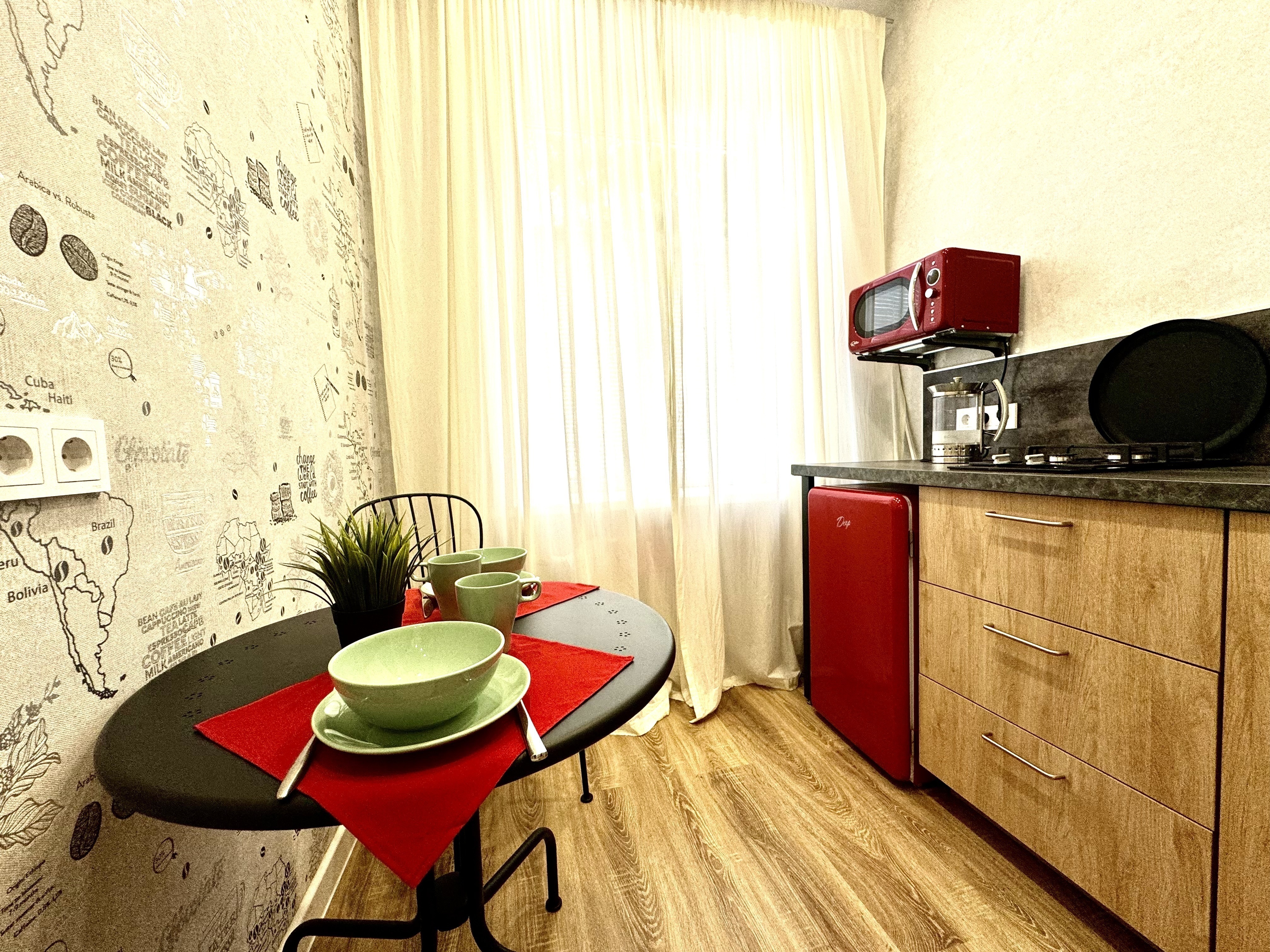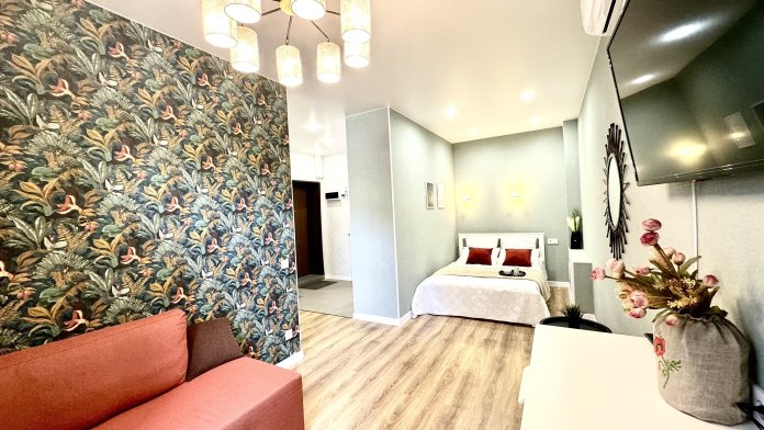 Есть все необходимое для комфортного проживания проживания, окна выходят в тихий уютный двор, парковка во дворе, бесконтактное заселение.