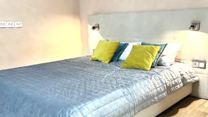 - Комфортные спальные места (двуспальная кровать и раскладной двухместный диван).
