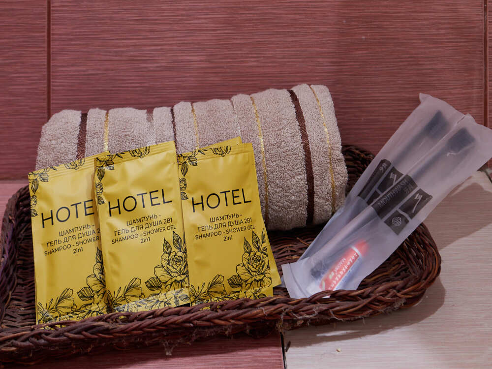 - шампунь, гель для душа, тапочки; гигиенический набор;