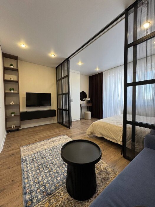 Просторная 1-комнатная квартира с дизайнерским ремонтом в центре для пар, ценящих комфорт и уединение.