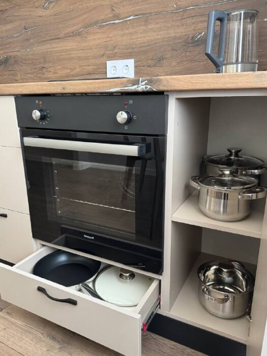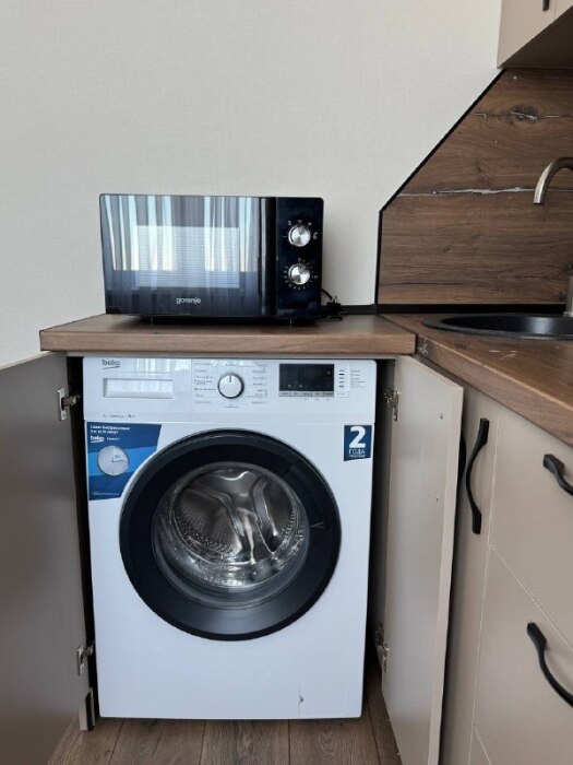 - Кухня: холодильник, духовка, СВЧ, посуда, стиральная машина.