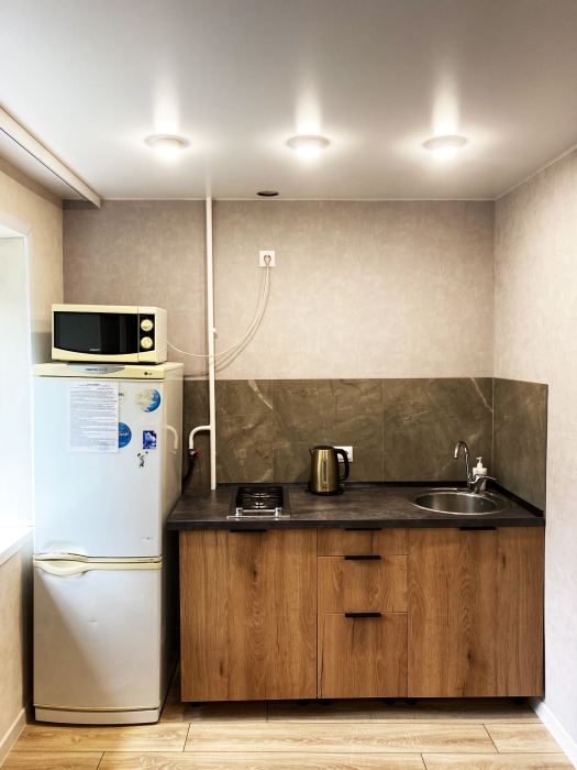 - Оборудованная кухонная зона (Электрическая плитка, холодильник, микроволновая печь, электрический чайник, кухонный гарнитур, вся необходимая посуда для приготовления)️