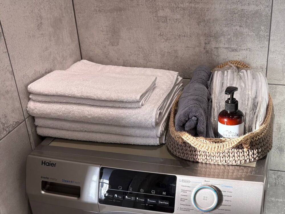Для Вашего удобства в квартире имеются: стиральная машина, сушилка для вещей, фен, ручной отпариватель для одежды, а также средства гигиены и пушистые полотенца.