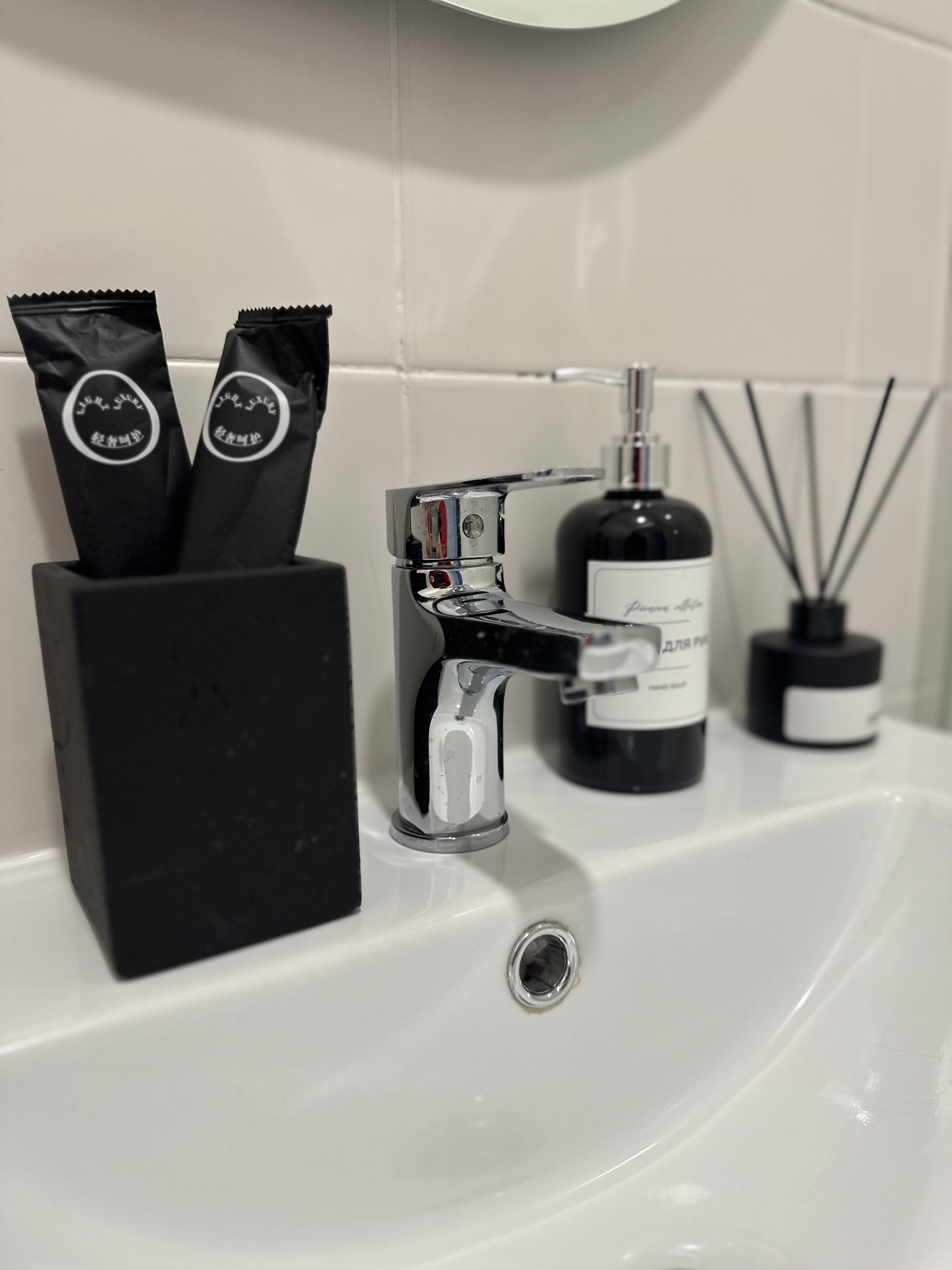 - Ванные принадлежности (Гель для душа, шампунь, зубные щётки), полотенца;