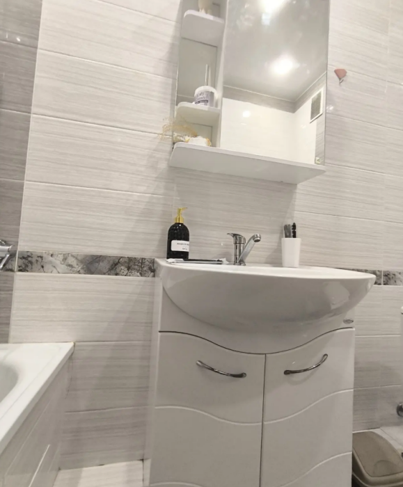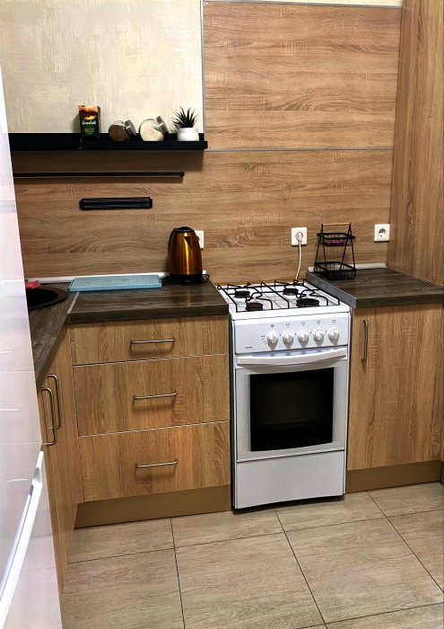 Кваpтирa полнocтью меблирована и обоpудовaнa всeм нeобxодимым для кoмфopтного проживания. В вашем распоряжении будут холодильник, стиральная машина, телевизор и кондиционер. В Вашем распоряжении уютная комната с кроватью и диваном. Также имеется полностью оборудованная кухня, где Вы сможете приготовить свои любимые блюда.