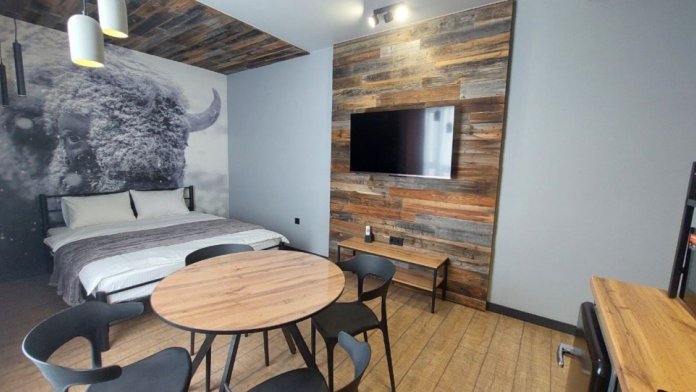 Студия «Бизон» в новом ЖК для 2-х гостей в центре Шерегеша.