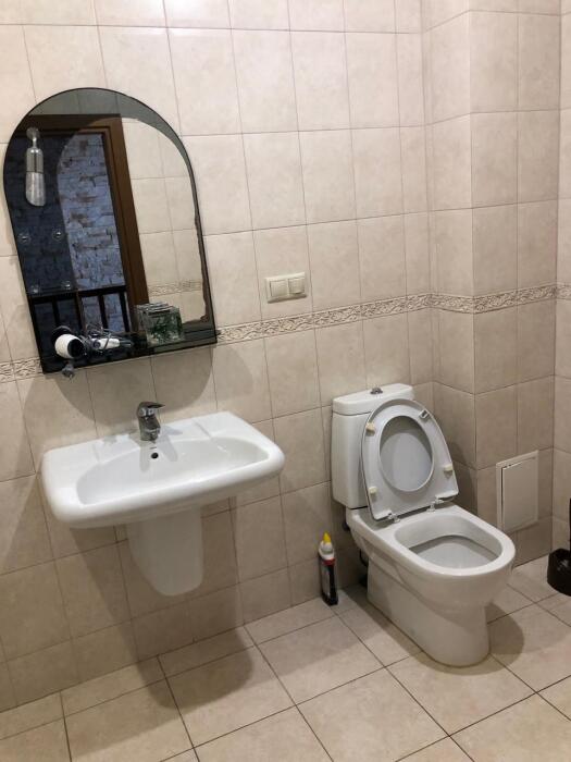 На 1 этаже: кухня столовая (вся необходимая техника), санузел с душевой кабиной, стиральная машина.