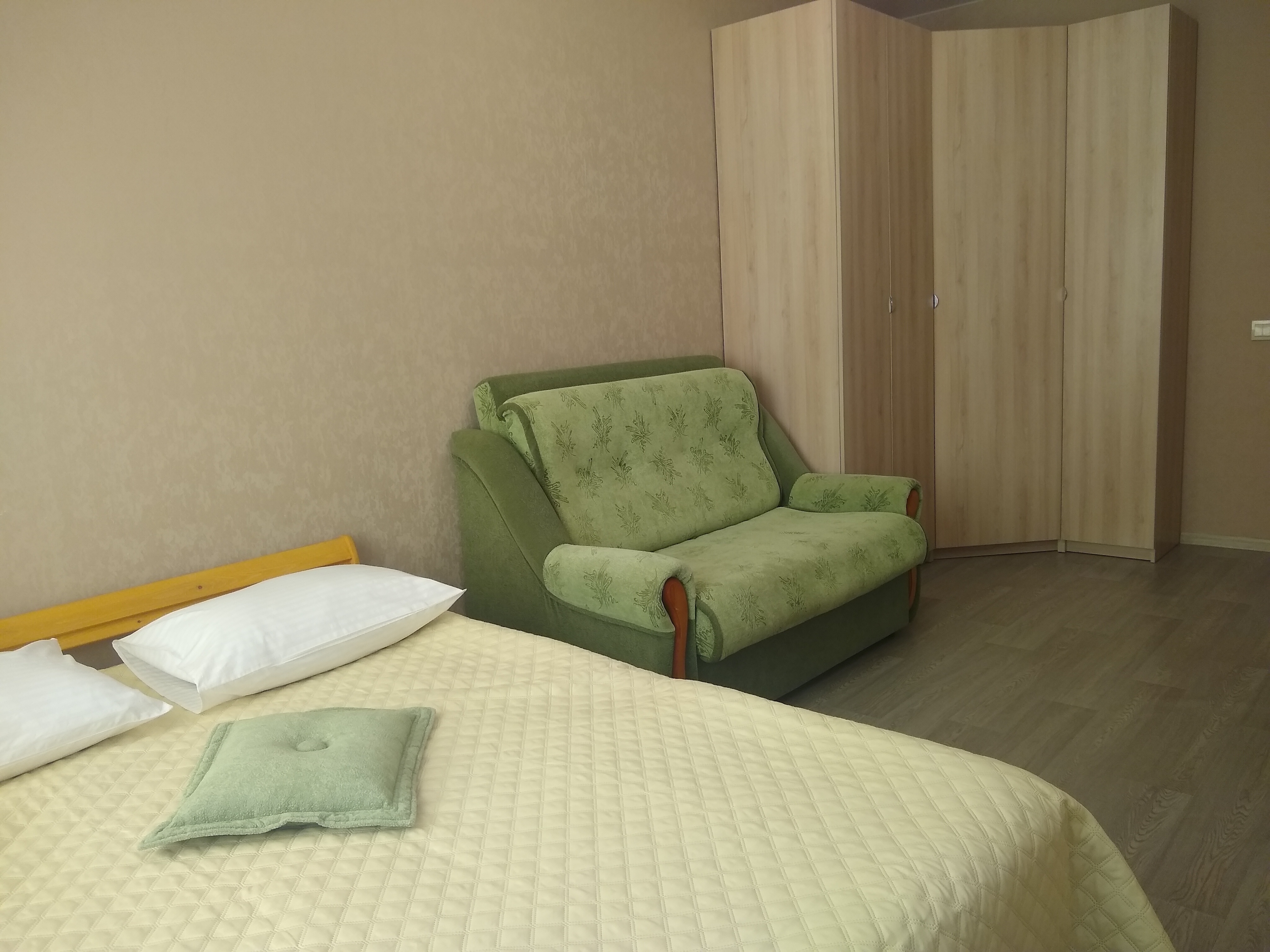 - Полностью оборудованная кухня (холодильник, плита, СВЧ, чайник).
