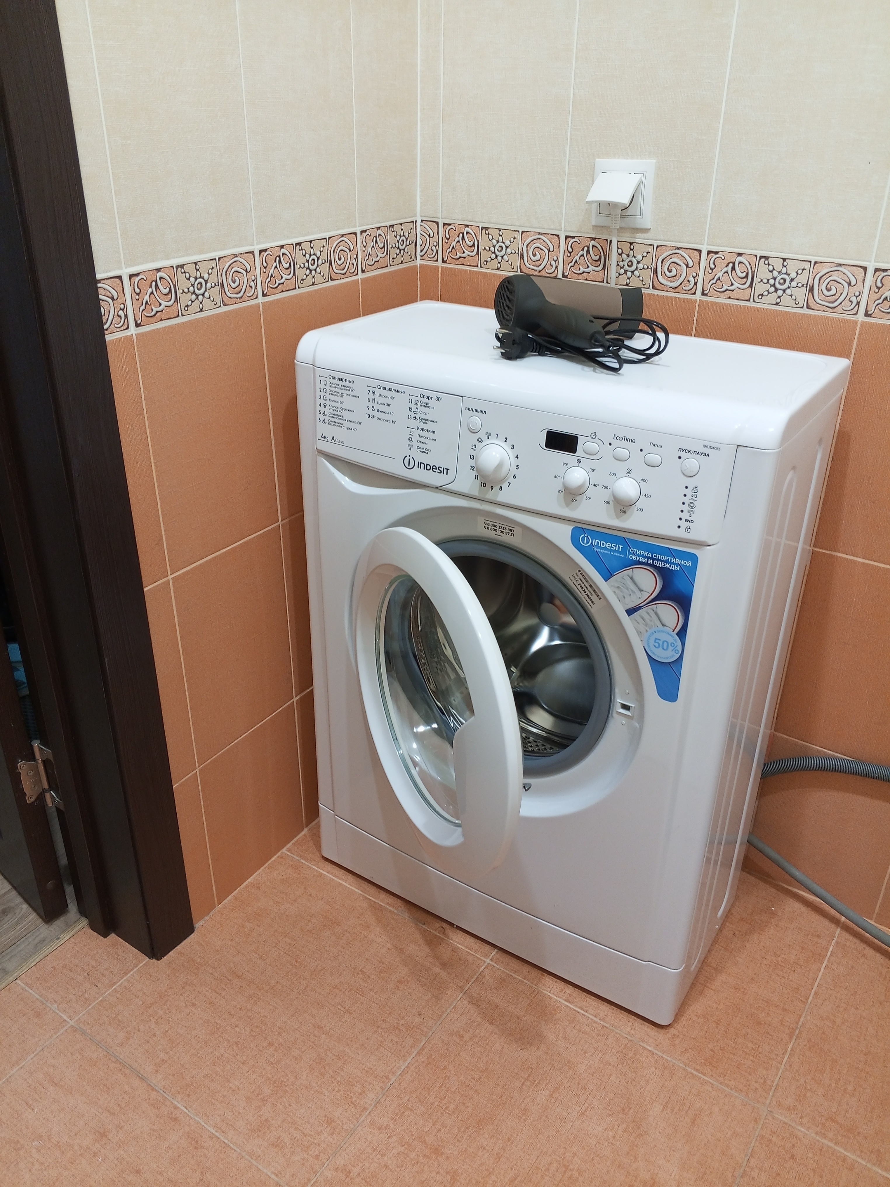 Техника: стиральная машина, утюг с гладильной доской, сушилка, пылесос.