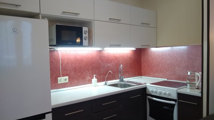 Микроволновая печь, электрическая плита, чайник.