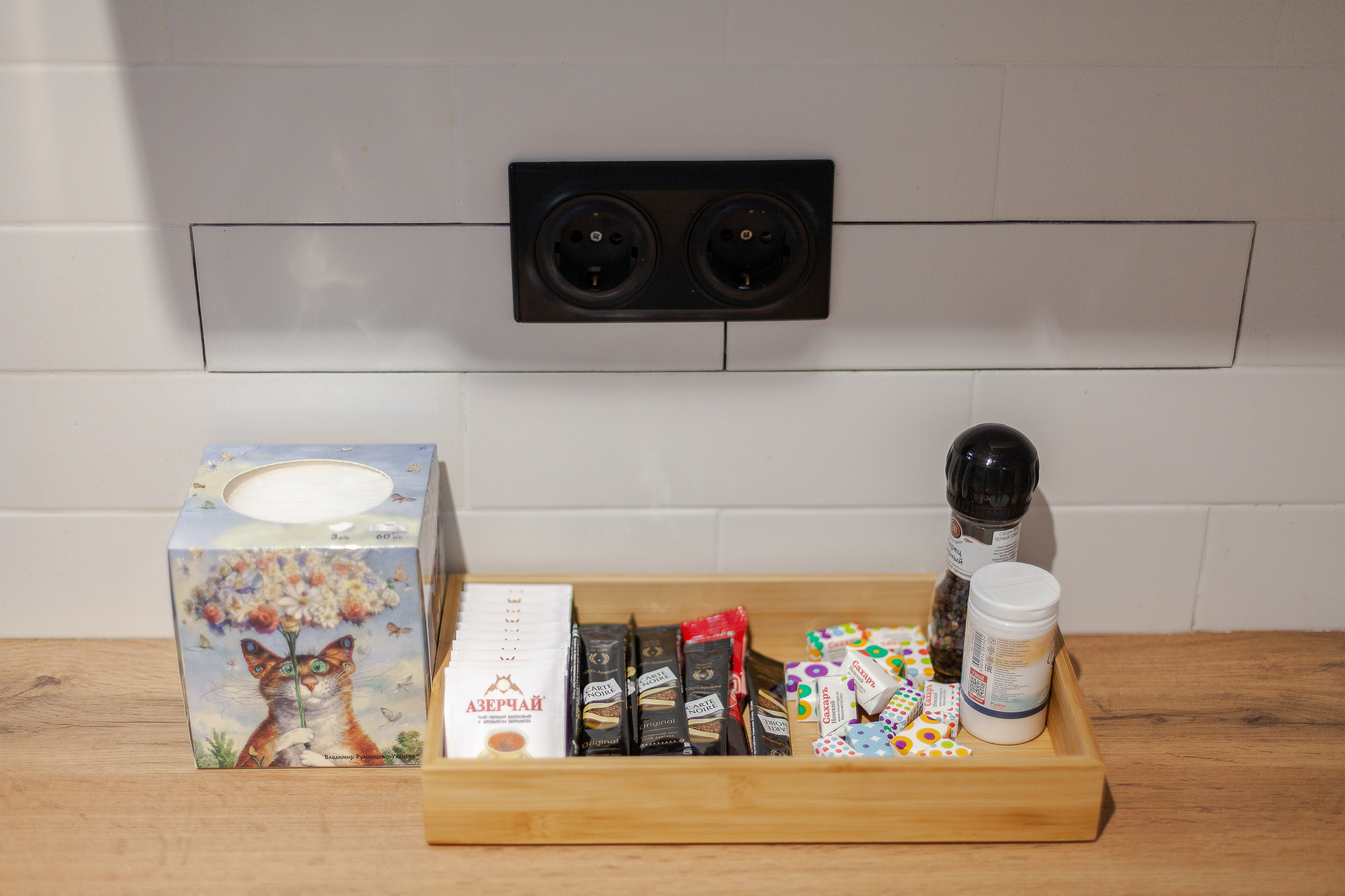 - чай, кофе, сахар, соль, перец, масло;