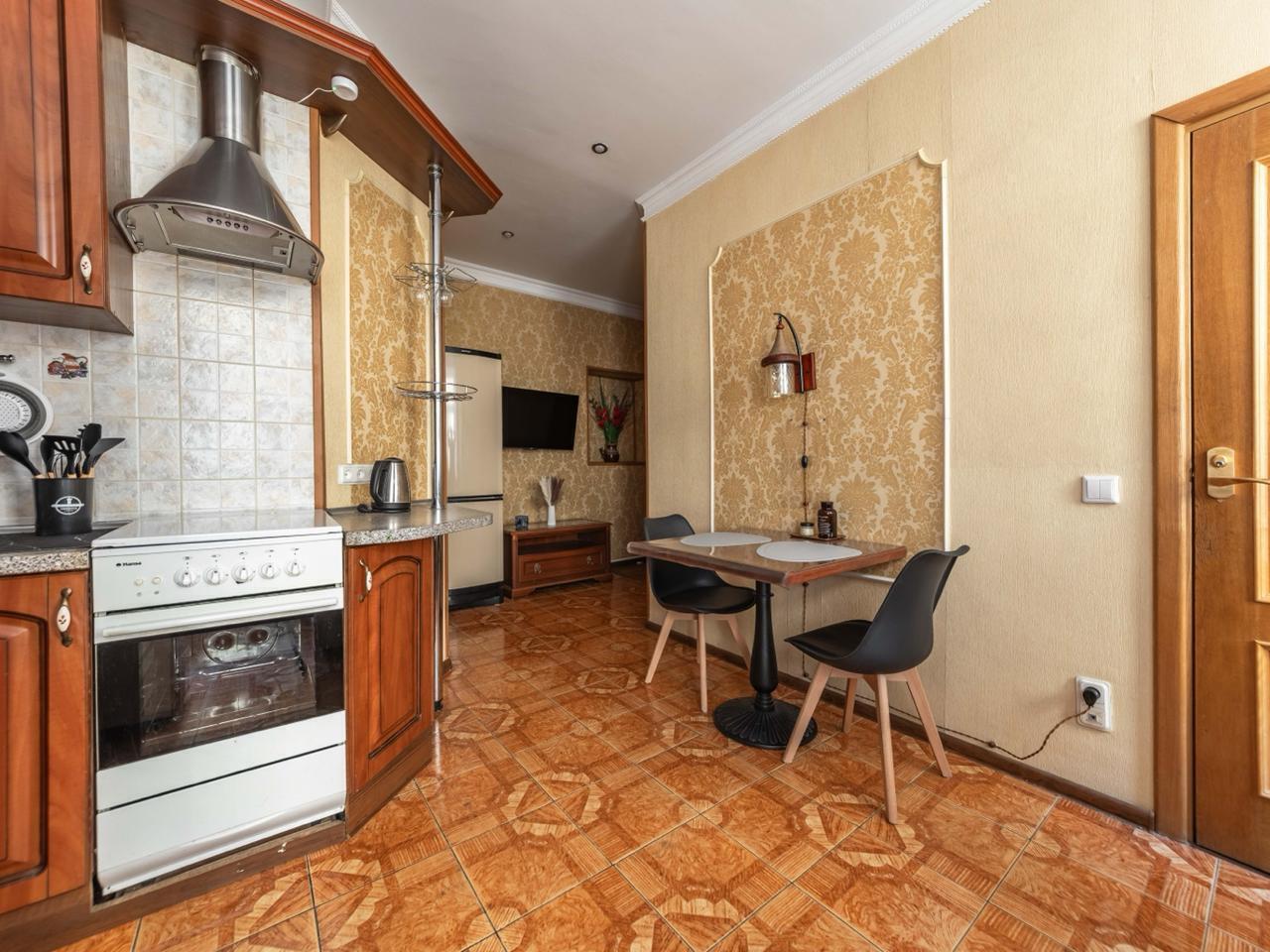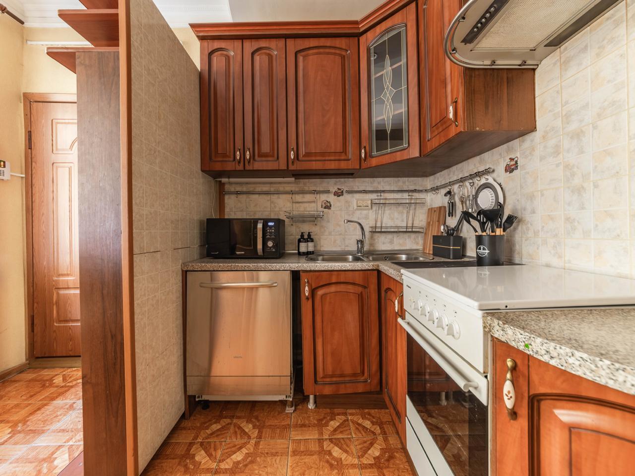 - Кухня: электрическая плита с духовкой. Электрический чайник. Посудомоечная машина. Полный набор кухонной утвари и посуды для приготовления еды.