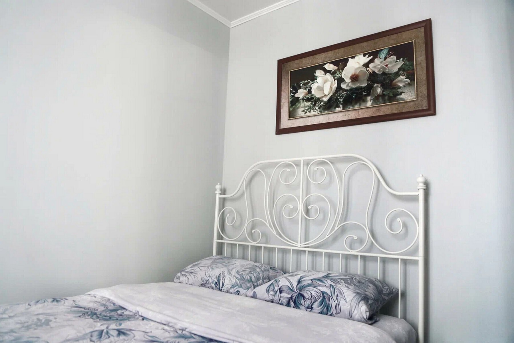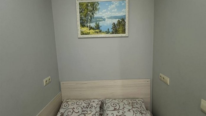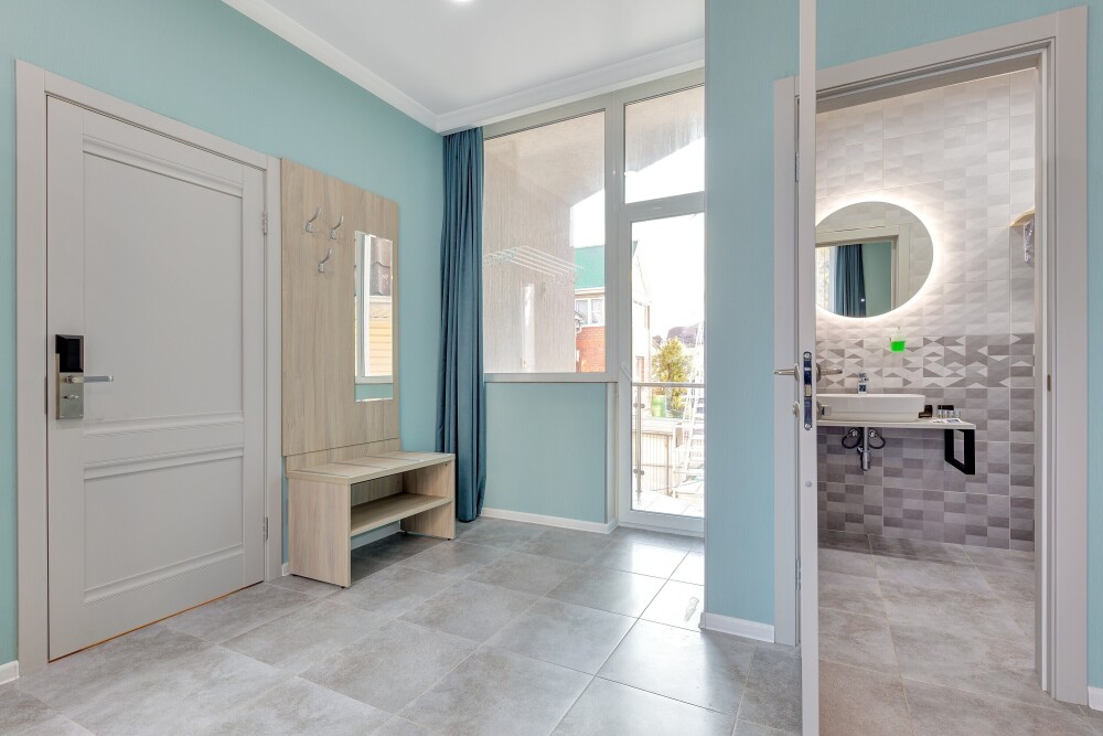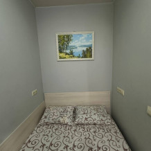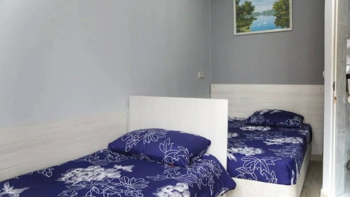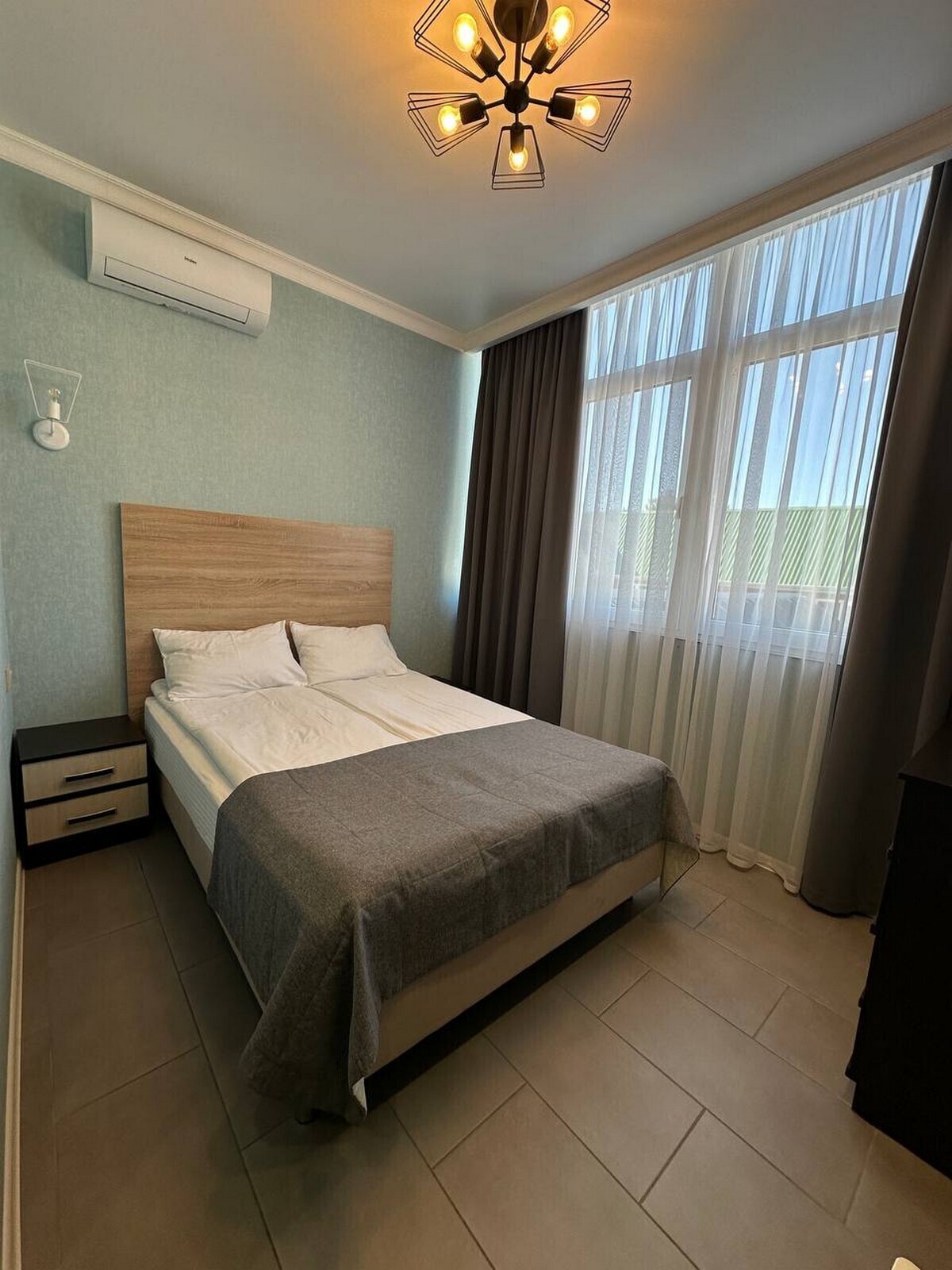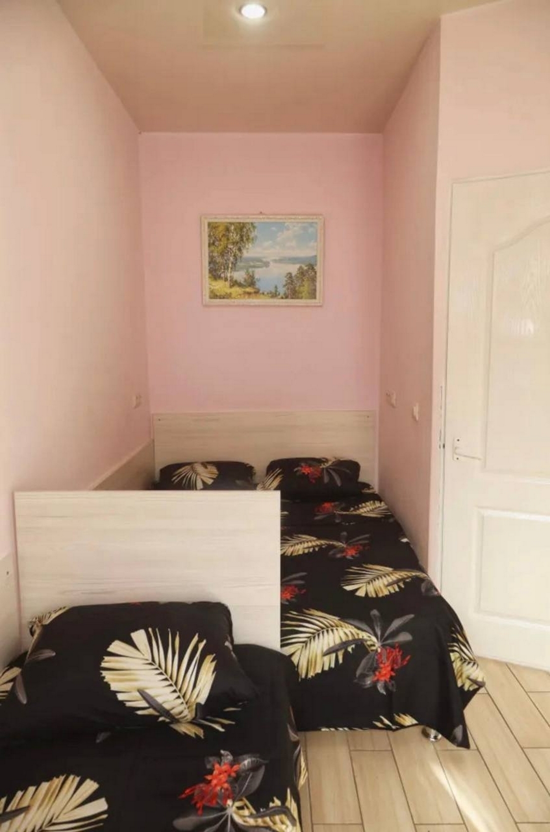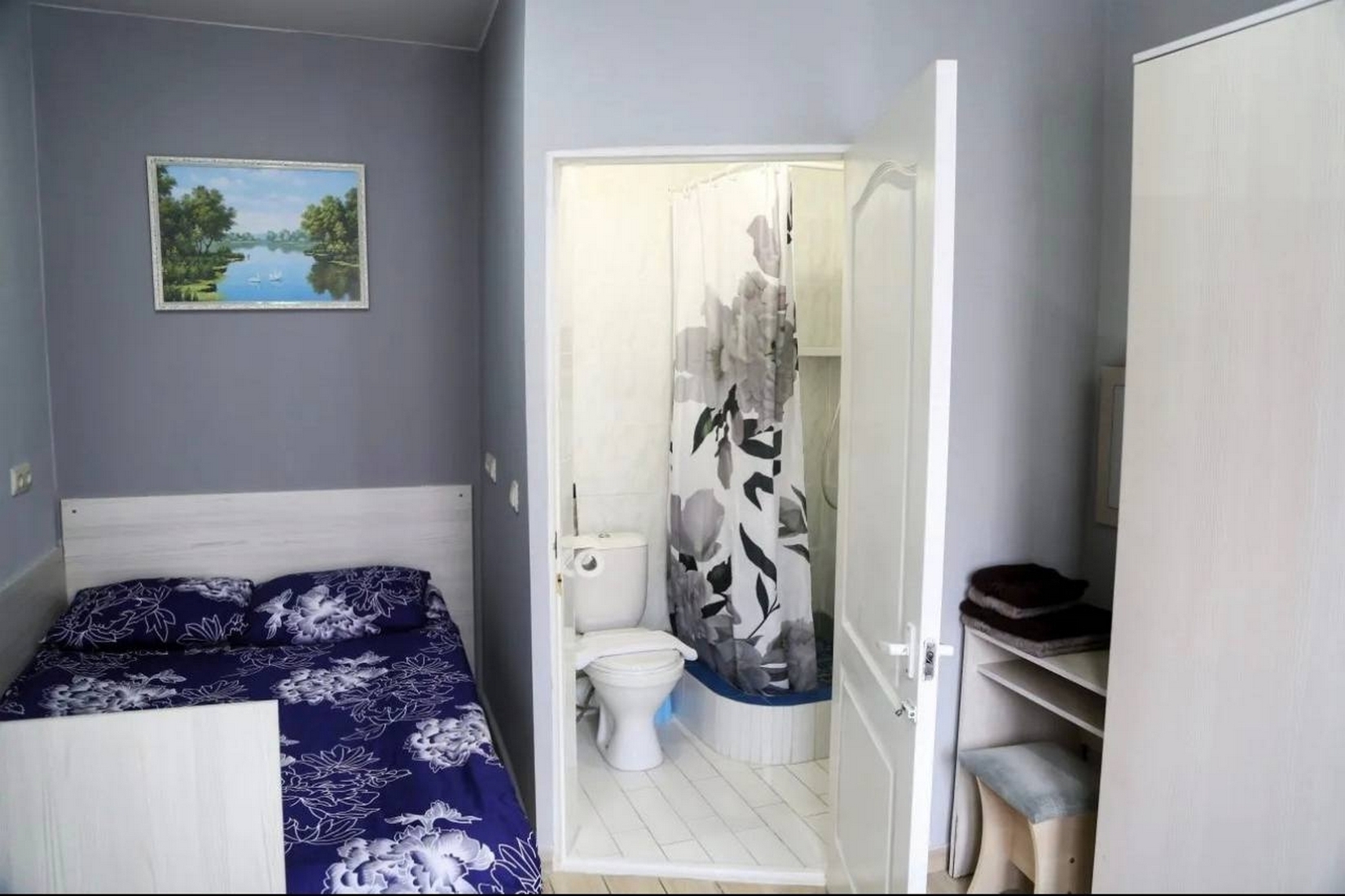 Имеет спальню с приятным интерьером. В номере: 1 двуспальная и 1 односпальная кровати. Имеется телевизор, кондиционер, шкаф, вешалка, зеркало, журнальный столик, фен, стулья. Индивидуальная ванная комната: душ, раковина, туалет.